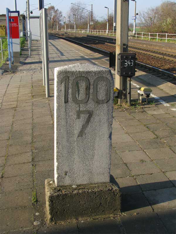 | Borsdorf (Sachs) | 0,01 | km 11,45 der Strecke Leipzig Hbf 0,15 - Riesa 65,87 - Coswig 101,93 - Dresden Neustadt 115,94 (LD) |