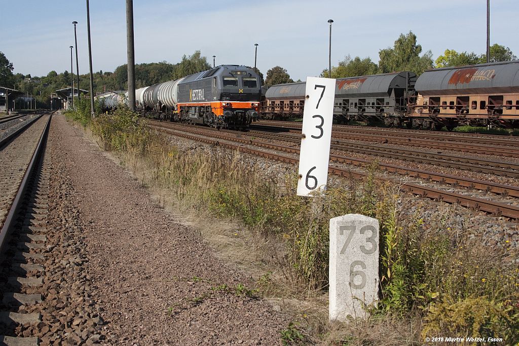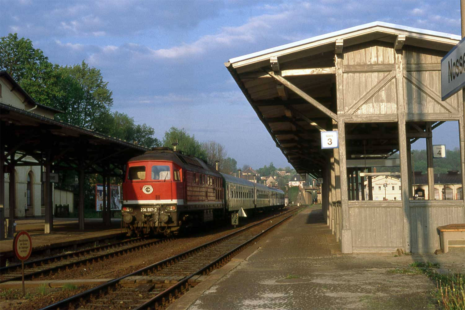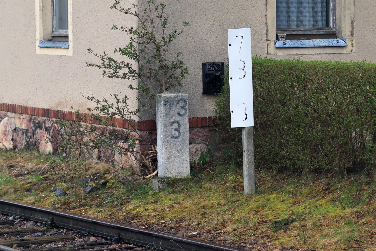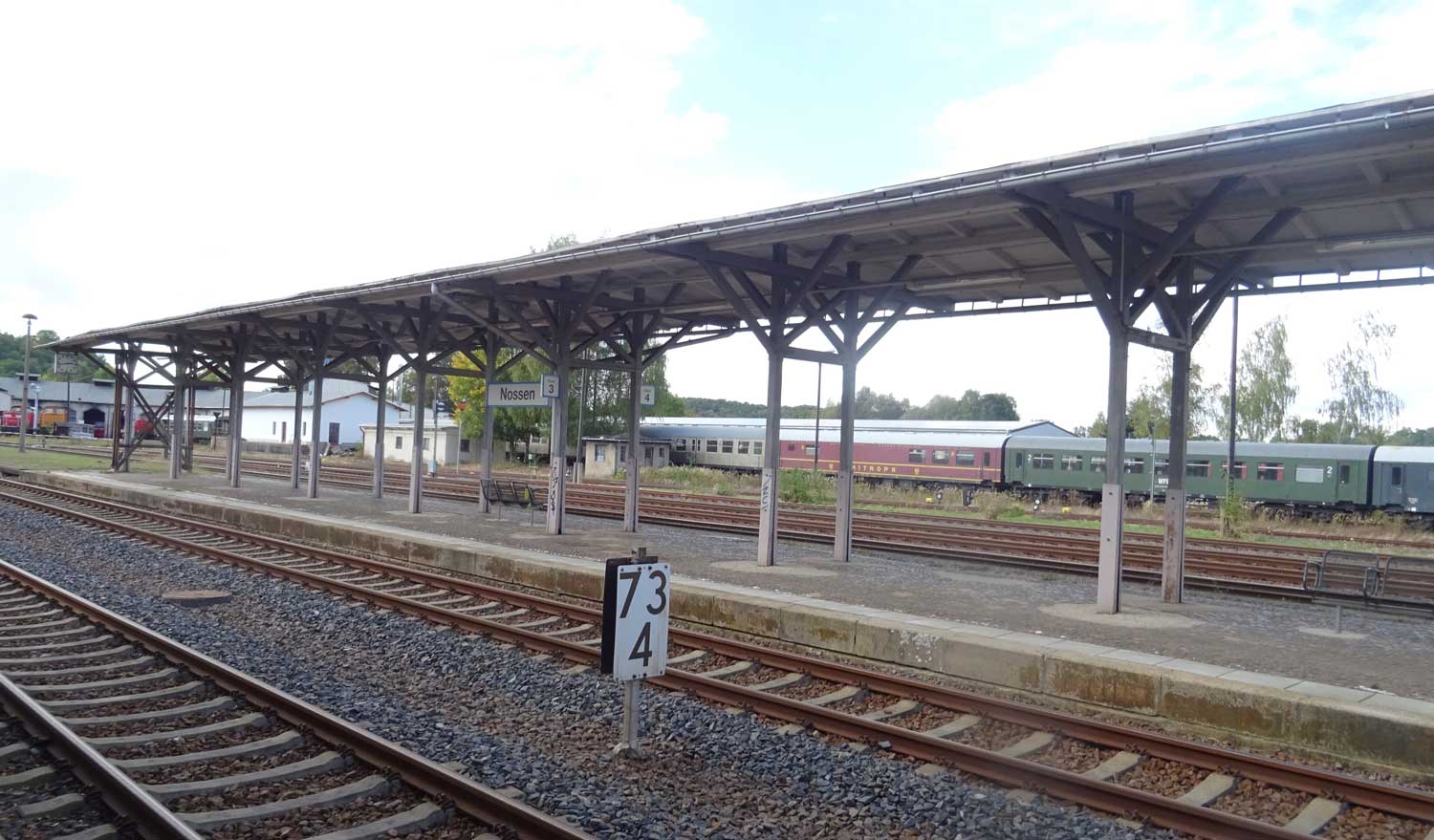 | Nossen | 73,41 | km 0,0 der Strecke Nossen 0,0 - Freiberg (Sachs) 23,97 - Staatsgrenze Deutschland/Tschechien - Moldava (dt.: Moldau) 63,40 (NM) |