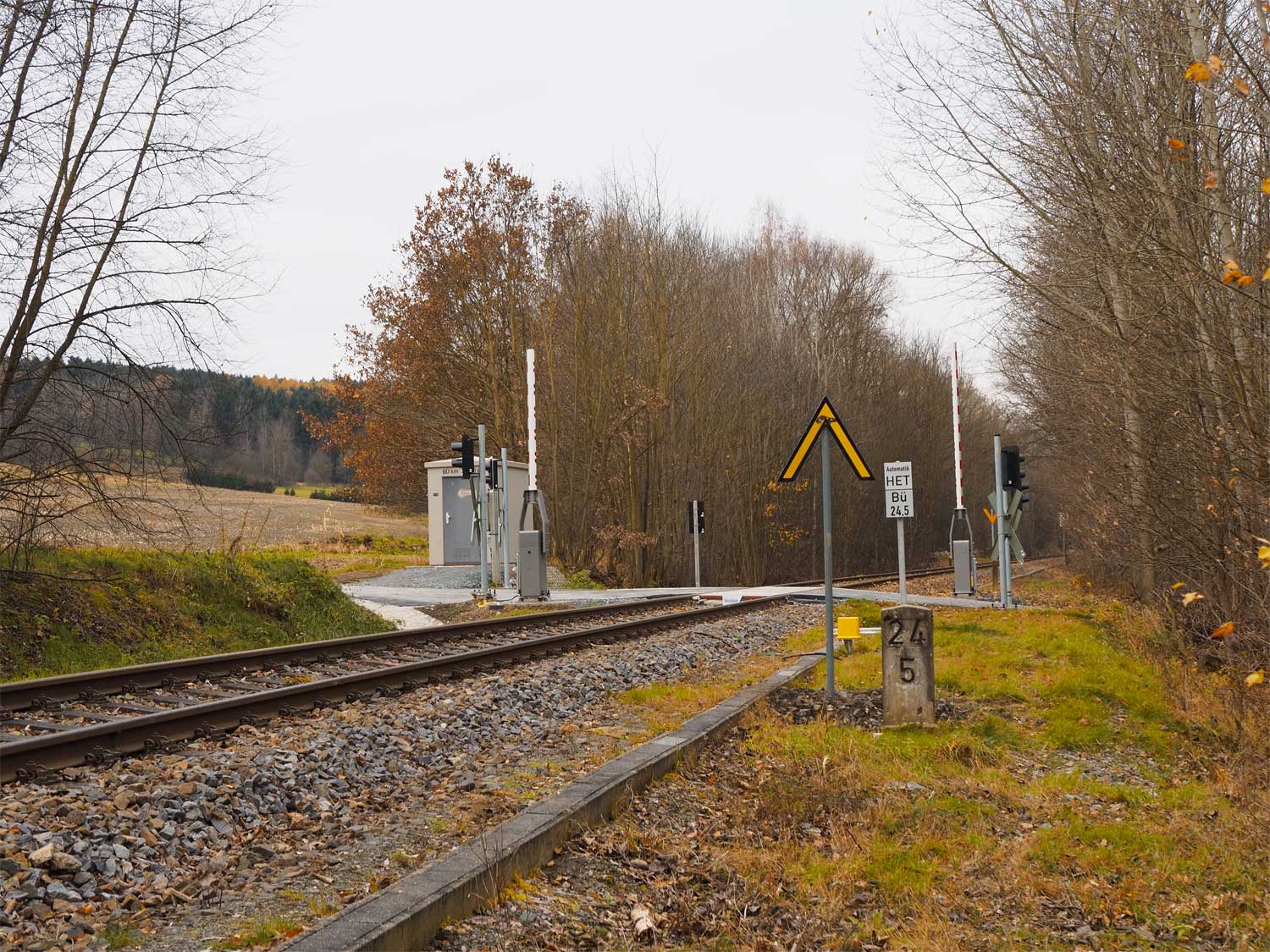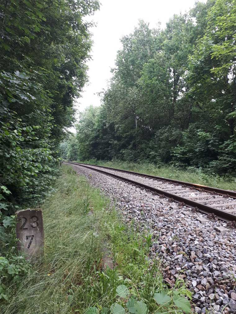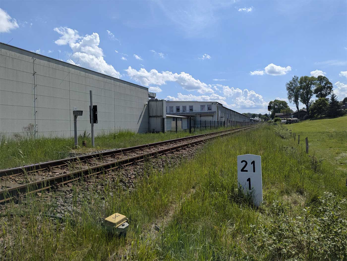 | km 25,69 der Strecke Aš (Asch) 0,0 - Grenze Tschechoslowakei/Deutschland 16,870 - Arnsgrün 18,54 - Adorf (Vogtl) 25,69 (AA) |