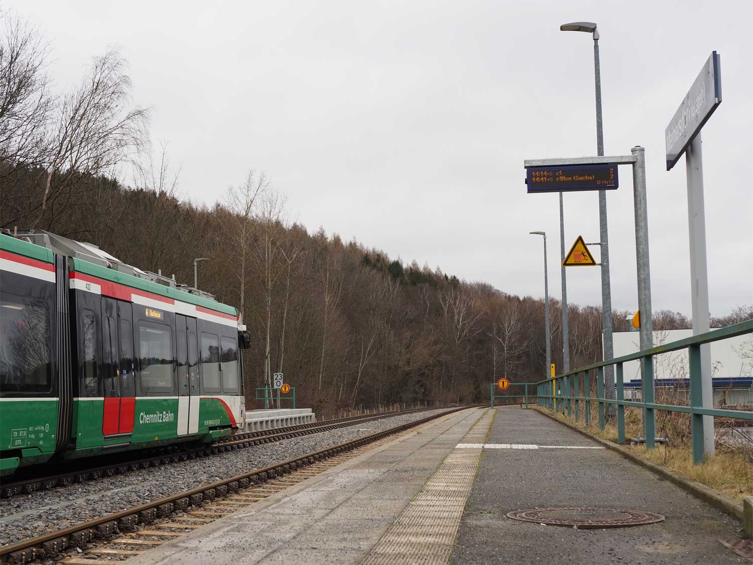 | Chemnitz Süd | 1,99 | km 81,82 der Strecke Dresden Hbf -0,048 - Chemnitz Hbf 79,73 - Zwickau (Sachs) Hbf 128,35 - Abzw Werdau Bogendreieck (Neumarker Spitze) 136,23 (DW) |