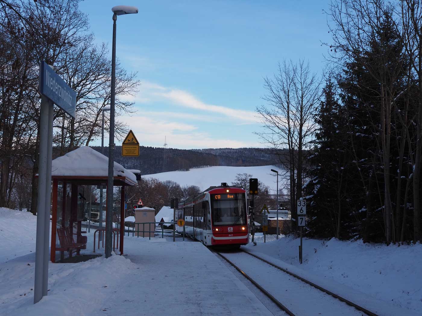 km 33,6 in Niederzwönitz - Blick Richtung Adorf
