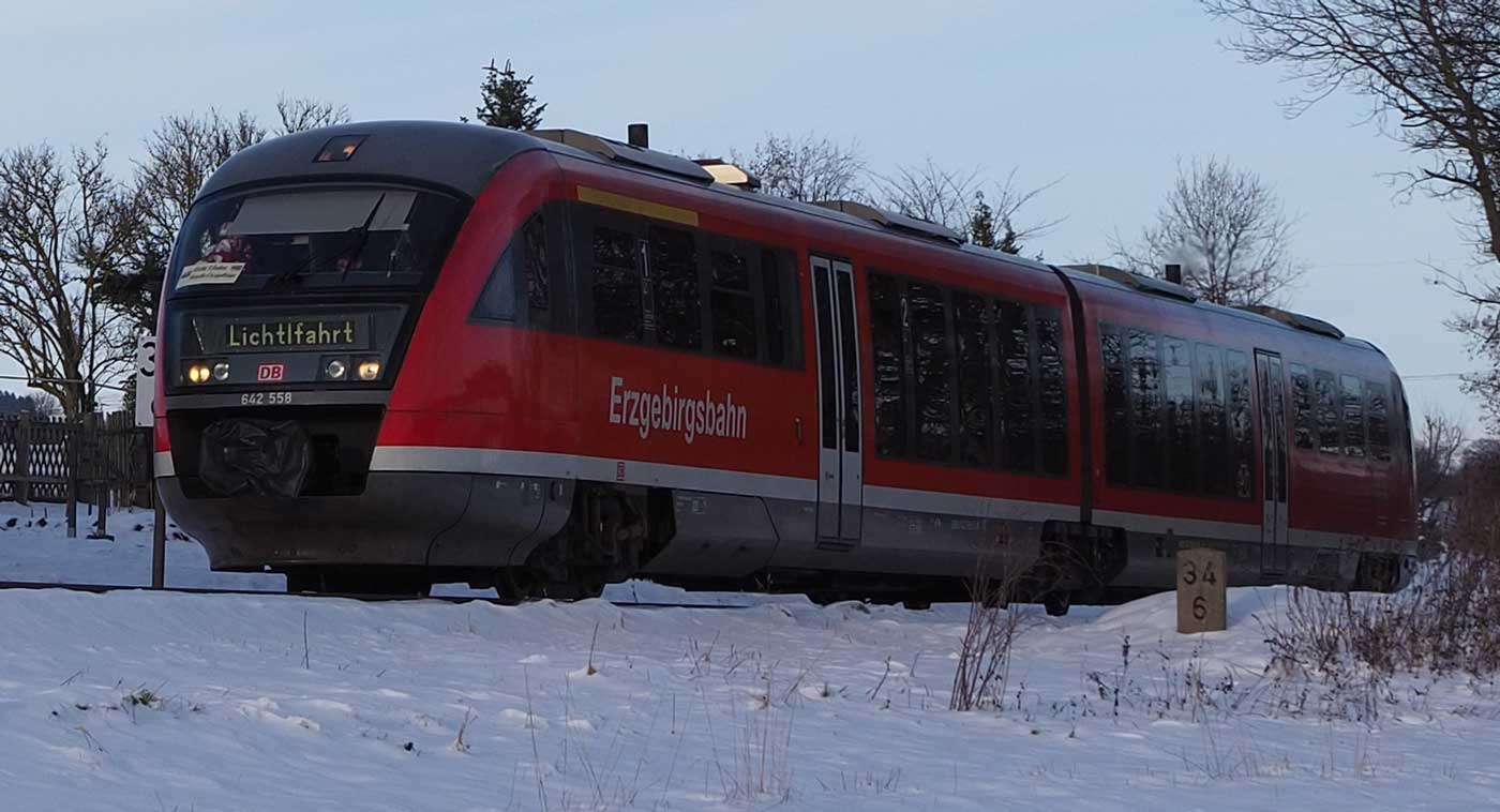 Chemnitz Hbf 0,12 - Aue (Sachs) 50,81 - Streckenunterbrechung - Muldenberg 89,12 - Adorf (Vogtl) 114,46 (6645/6663)
