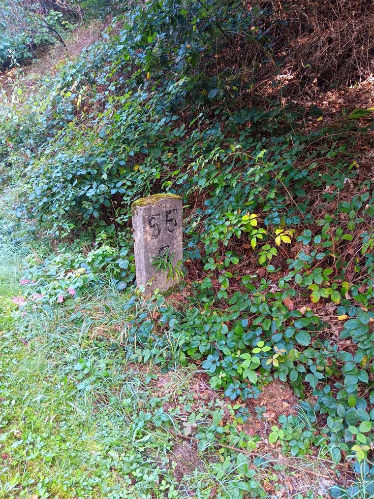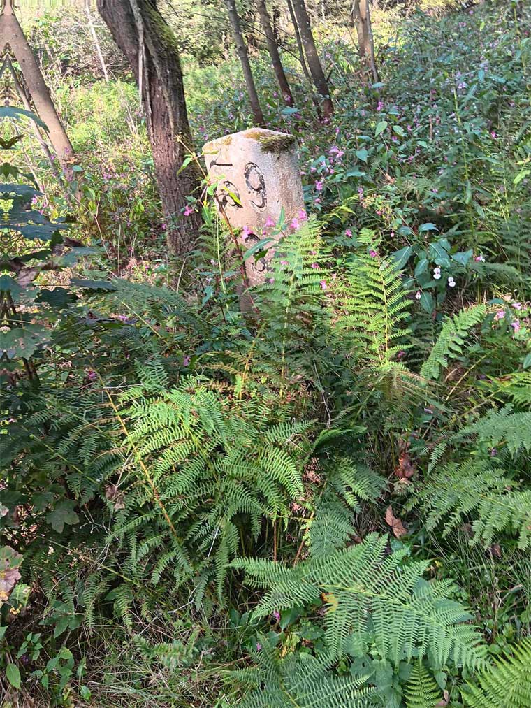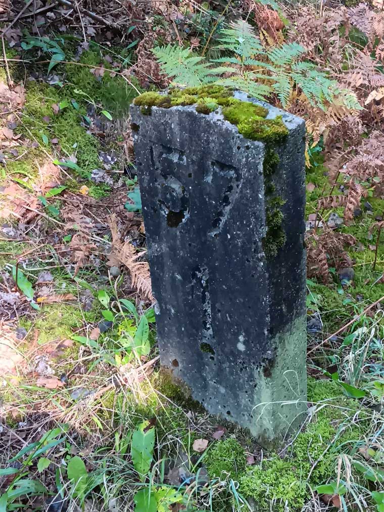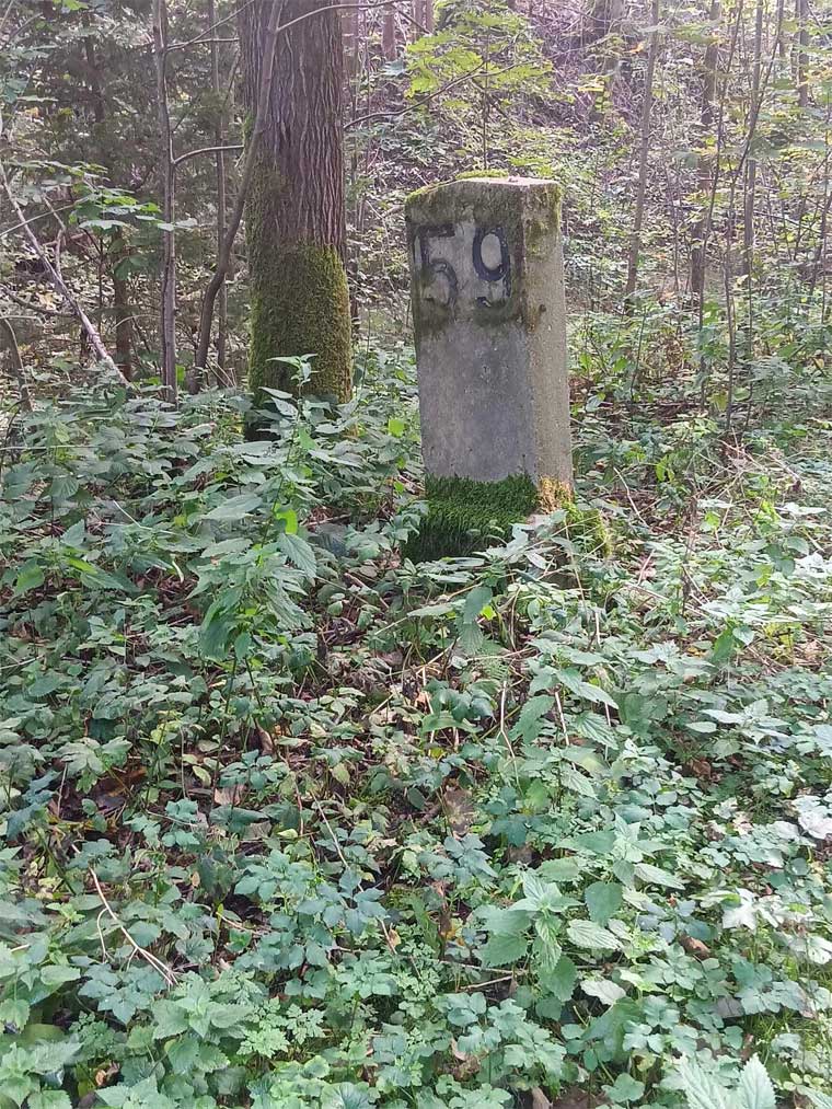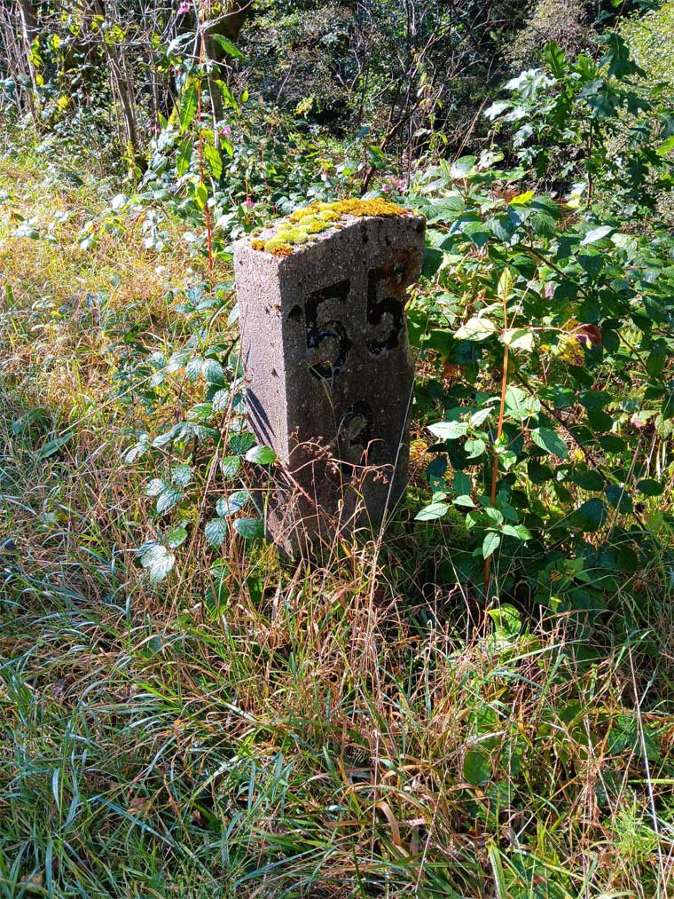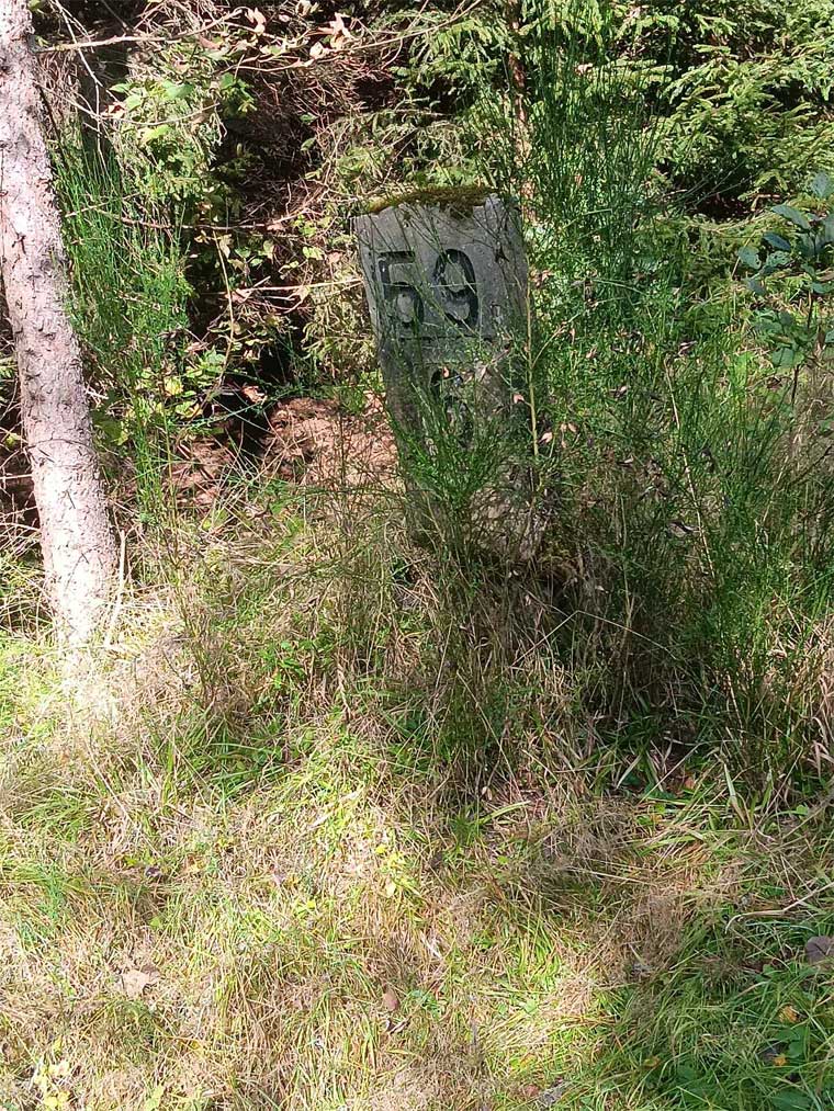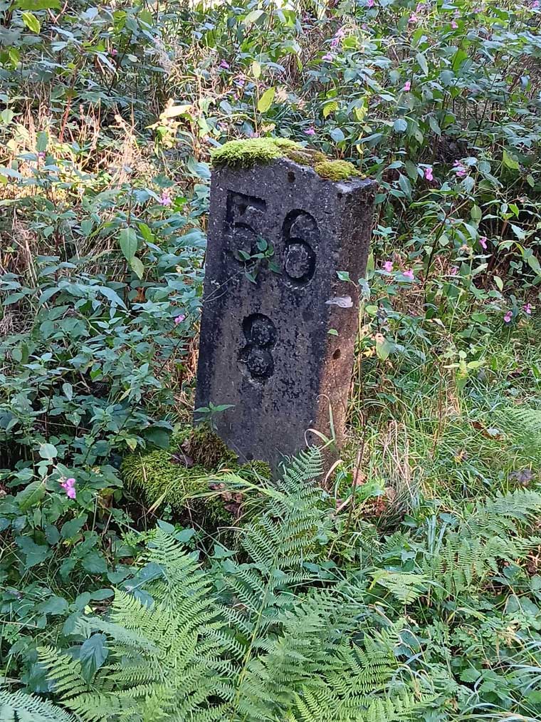 Davor der alte Myriameterstein 6 mit oben angebrachter Zahl 600 hm.