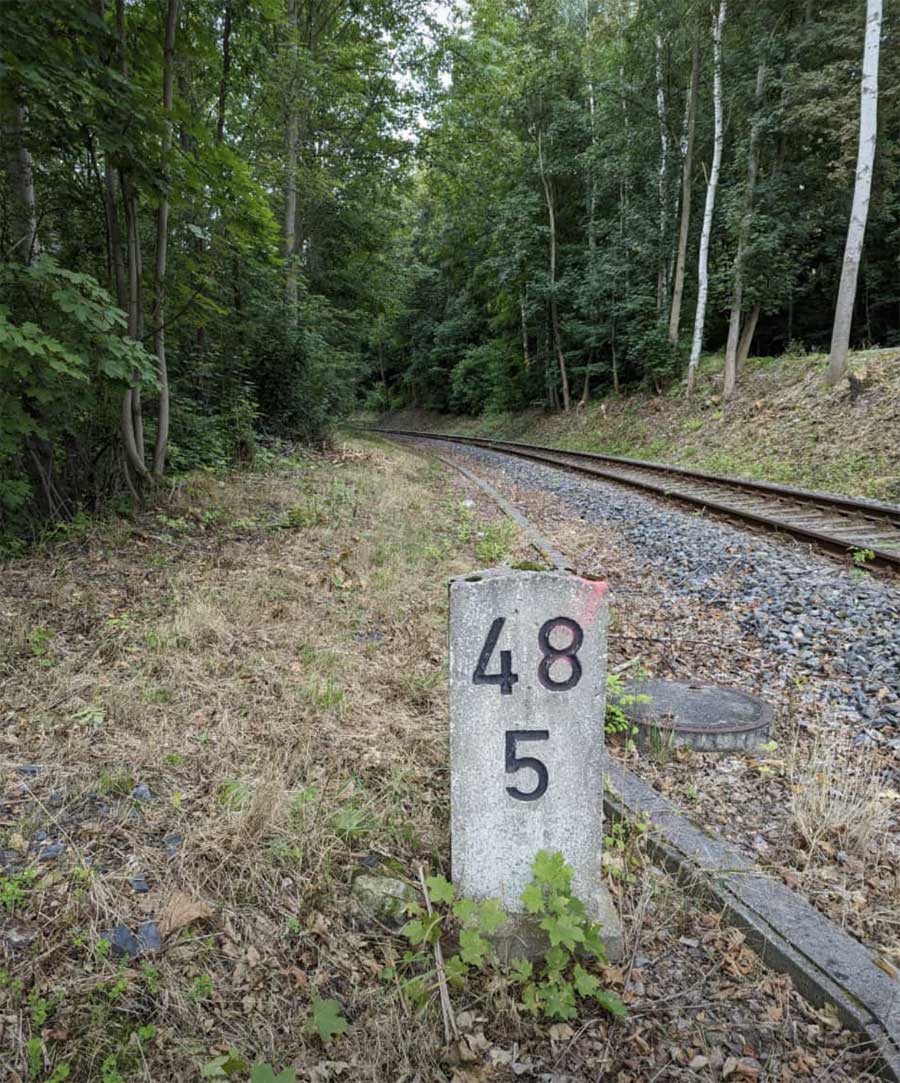 | km 25,69 der Strecke Aš (Asch) 0,0 - Grenze Tschechoslowakei/Deutschland 16,870 - Arnsgrün 18,54 - Adorf (Vogtl) 25,69 (AA) |