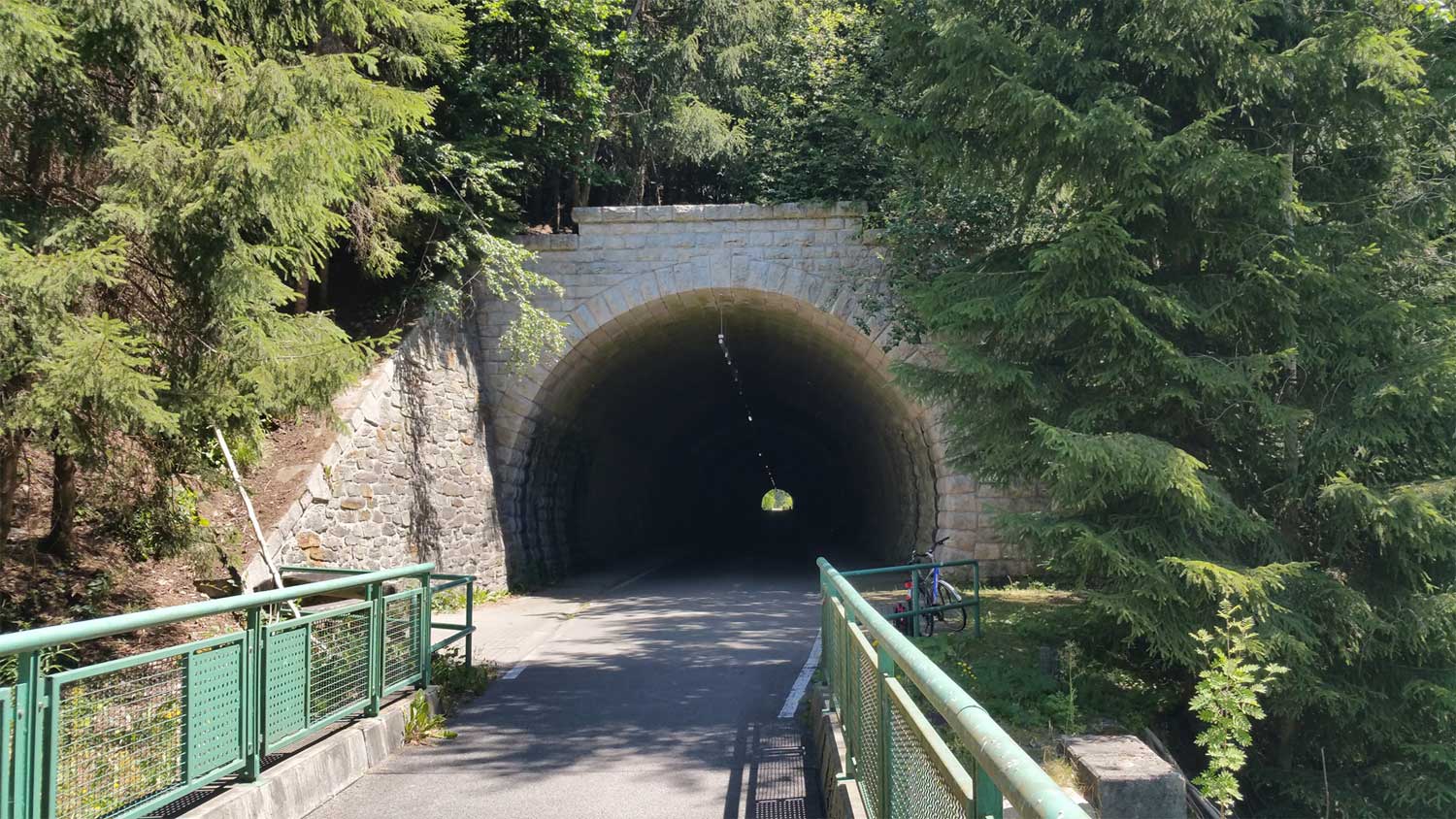 Blick zum Nordostportal des Bockauer Tunnels zwischen Aue (Sachs) und Bockau (Erzgeb)