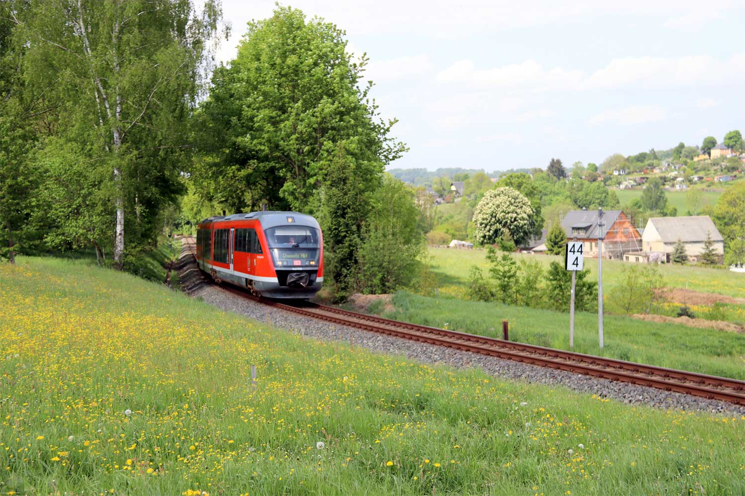 Chemnitz Hbf 0,12 - Aue (Sachs) 50,81 - Streckenunterbrechung - Muldenberg 89,12 - Adorf (Vogtl) 114,46 (6645/6663)