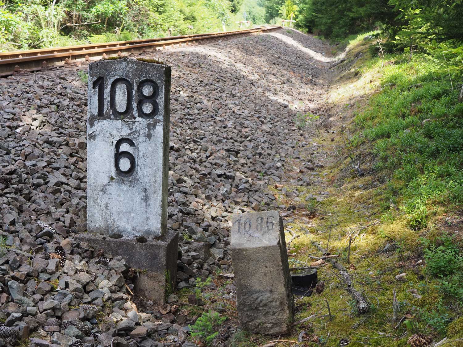 | km 25,69 der Strecke Aš (Asch) 0,0 - Grenze Tschechoslowakei/Deutschland 16,870 - Arnsgrün 18,54 - Adorf (Vogtl) 25,69 (AA) |