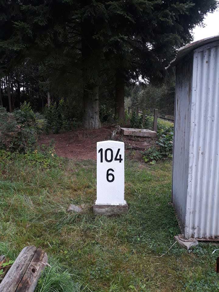 Rechts neben dem Stein ist noch der alte sächsische Hektometerstein zu erkennen. Er müsste ja die Zahl 1046 tragen.