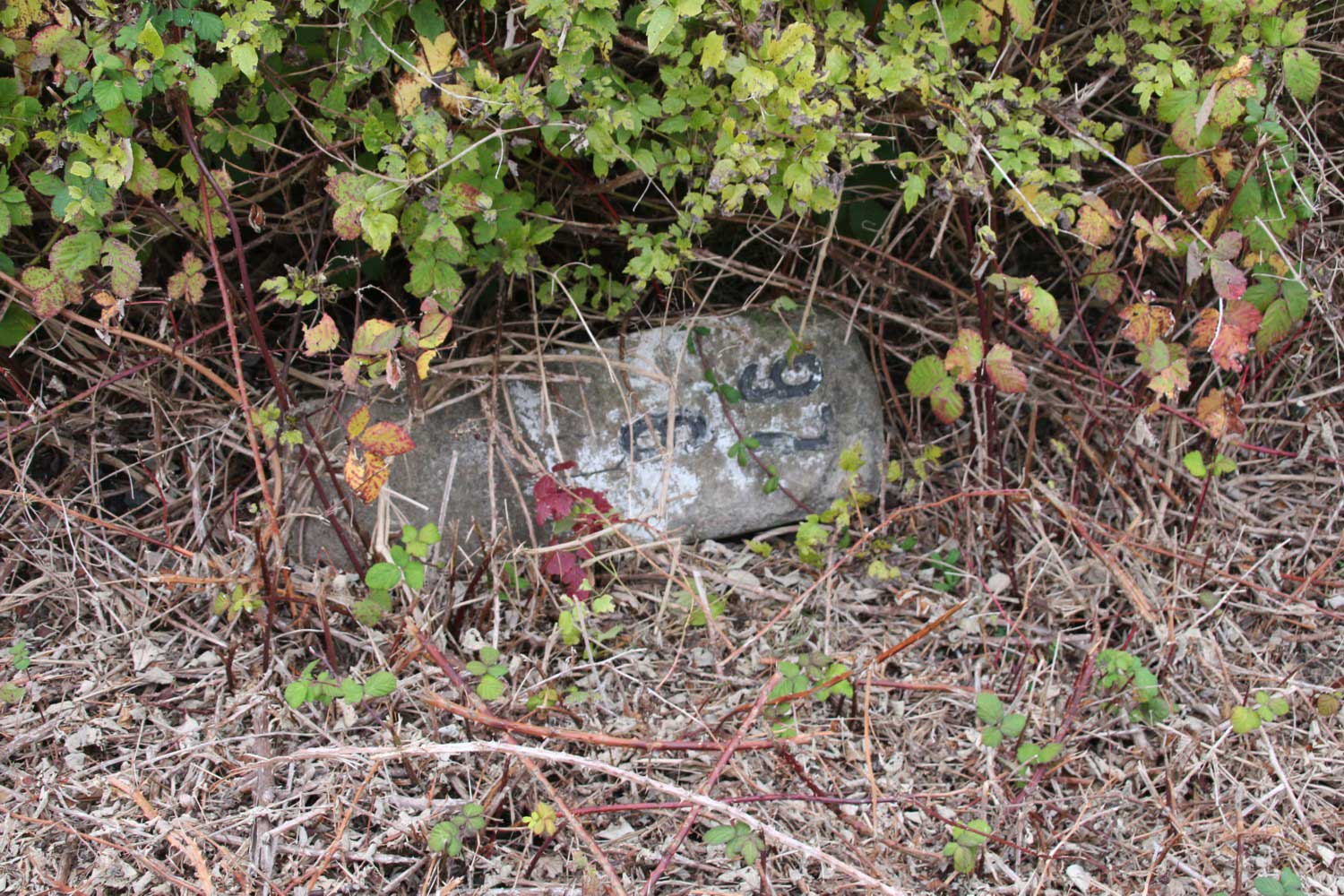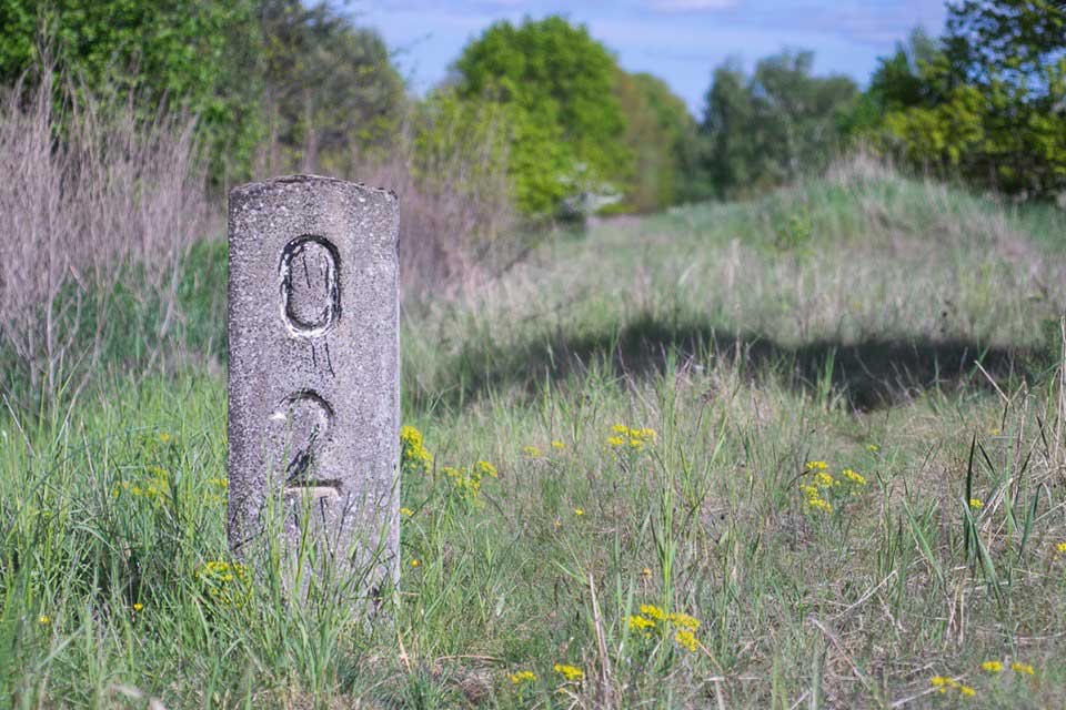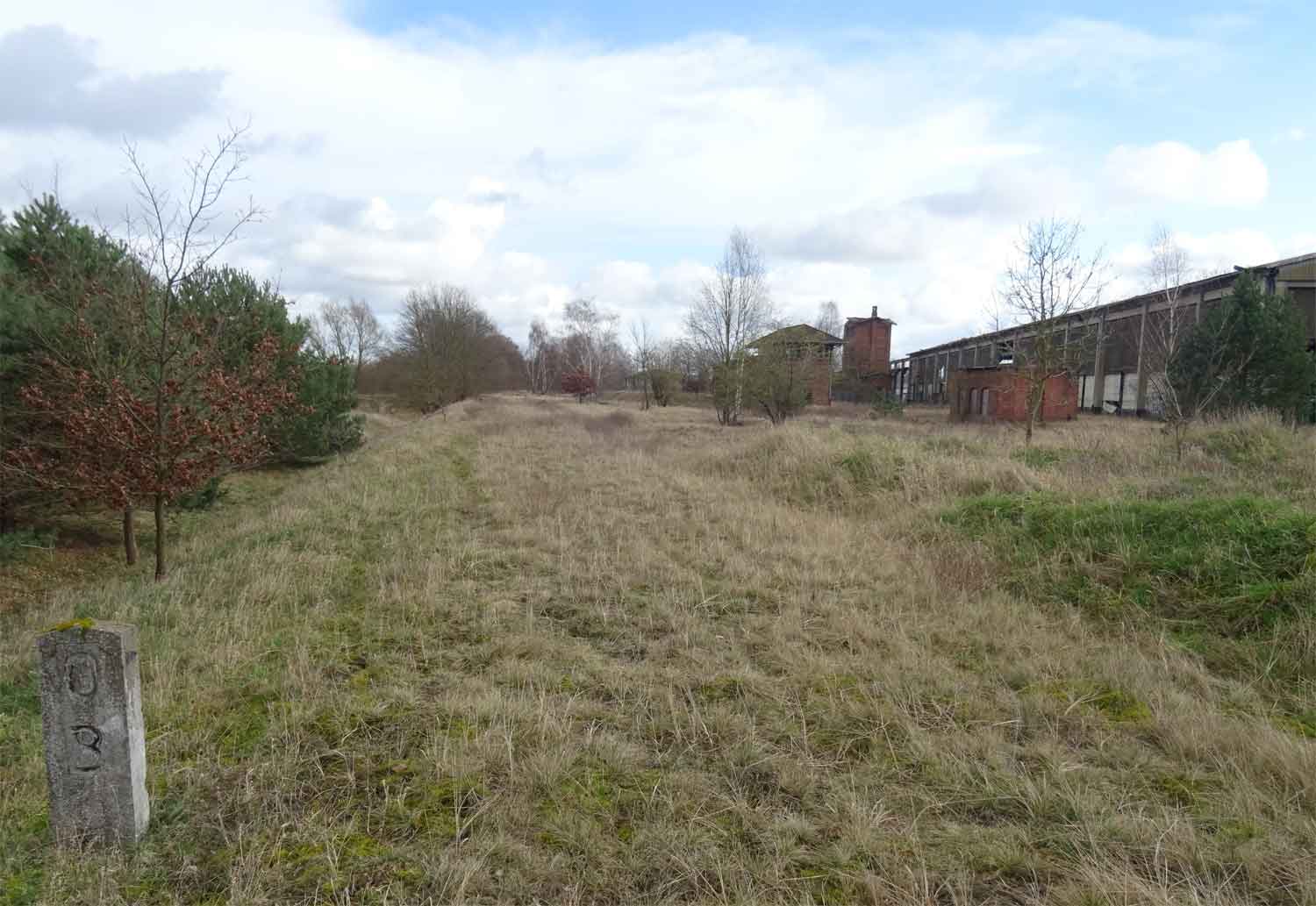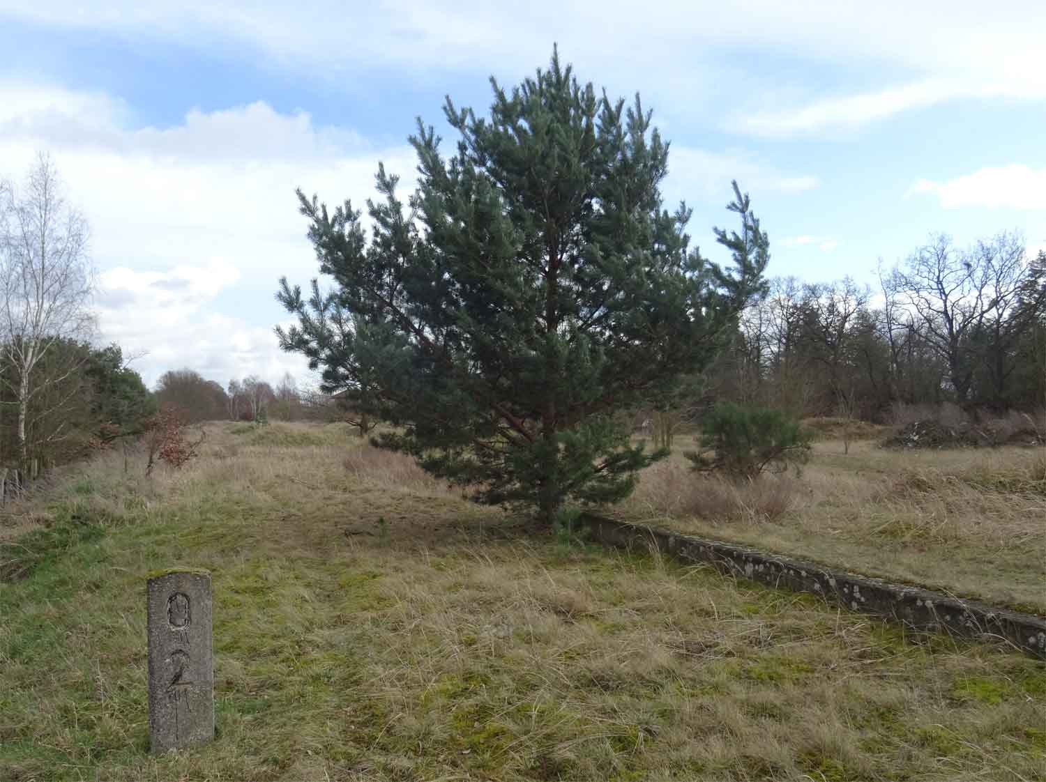 km 84,5 (Stein im Vordergrund) und km 84,6 (Tafel) zwischen Bad Kleinen und Losten