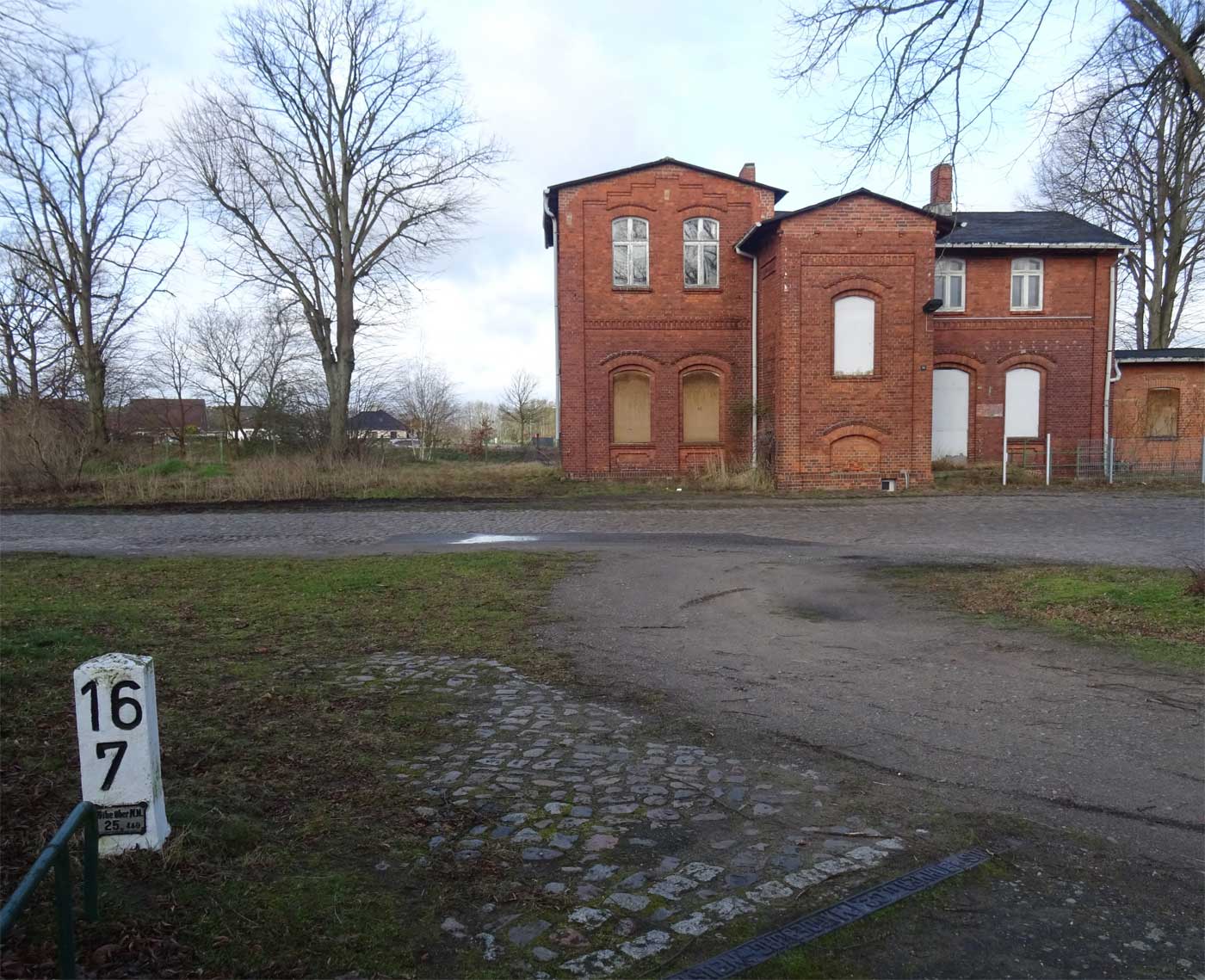 Ludwigslust | 30,28 | km 170,76 der Strecke Berlin Hamburger Bf (Lehrter Bf) 0,0 - Wittenberge 126,62 - Schwarzenbek 279,23 - Hamburg-Altona 293,14 |
