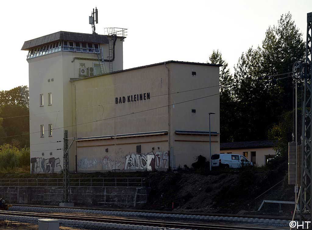 Bad Kleinen | 82,80 | km 59,32 der Strecke Lübeck Hbf 0,0 - Herrnburg 10,20 - km 10,80 + 2711 m = km 10,90 (Überlänge 2611 m) - Bad Kleinen 59,32 - Güstrow 113,26 - Malchin 156,32 - Neubrandenburg 200,94 - Kilometrierungswechsel 234,15 = [km 61,11 - Strasburg (Uckerm) 60,20 - Pasewalk 41,94 - Grenze DDR/Polen 13,194 - Szczecin Główny (Stettin Hbf) 0,063] (1122) |