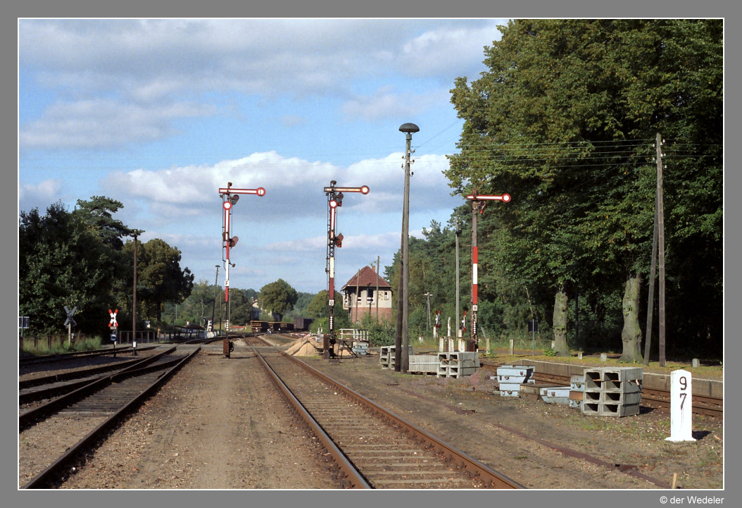 Ludwigslust | 30,28 | km 170,76 der Strecke Berlin Hamburger Bf (Lehrter Bf) 0,0 - Wittenberge 126,62 - Grenze DDR/BRD 236,470 - Büchen 238,90 - Schwarzenbek 249,26 - Hamburg Hbf 286,66 - Hamburg-Altona 293,22 |