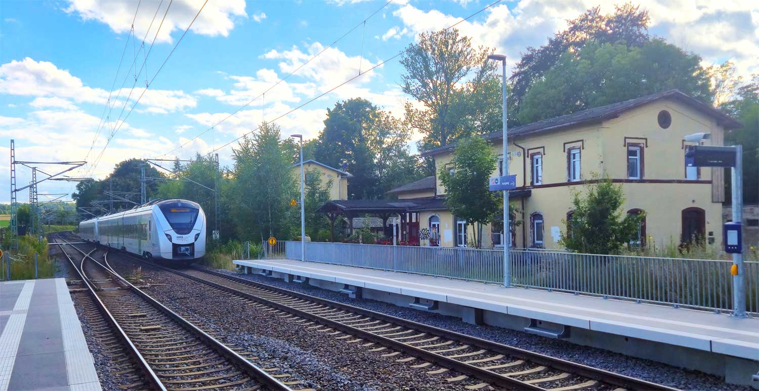 | km 75,59 der Strecke Leipzig Bayerischer Bf 0,12 - Altenburg Hbf 38,63 - Werdau 73,81 - Reichenbach (Vogtl) 90,96 - Plauen ob. Bf 116,11 - Hof (Saale) 164,8 (LH) | ||