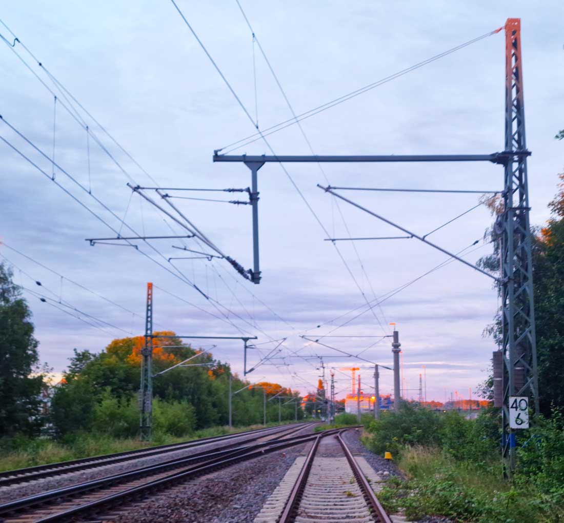 Linkss das Gleis der Strecke