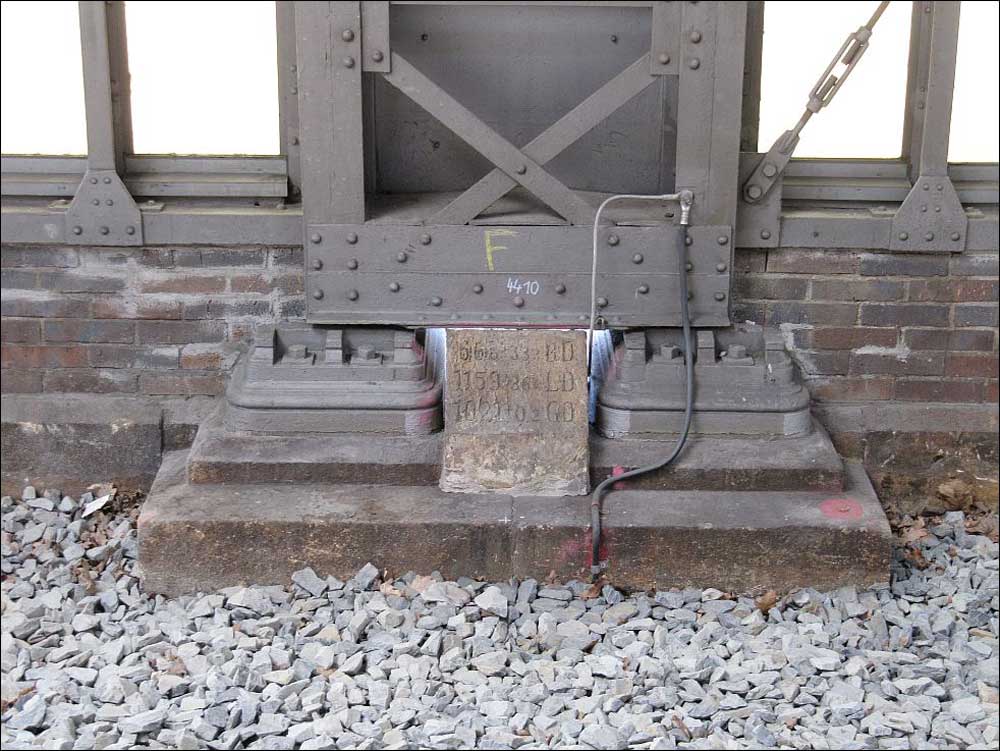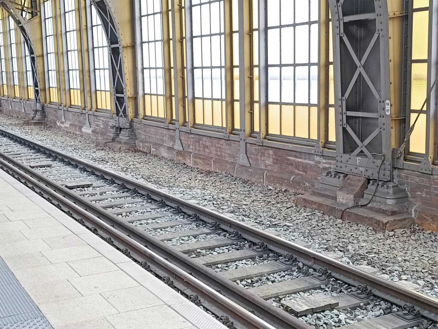 Am westlichen Fußpunkt des Bogens 10 der Bahnhofshalle befindet sich ein besonderer Hektometerstein (Der Standort ist nicht korrekt!):