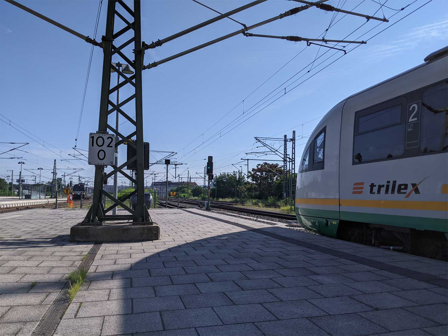 | Dresden-Neustadt | 102,10 | km 115,93 der Strecke Leipzig Hbf 0,15 - Riesa 65,87 - Coswig 101,93 - Dresden-Neustadt 115,93 (LD) |