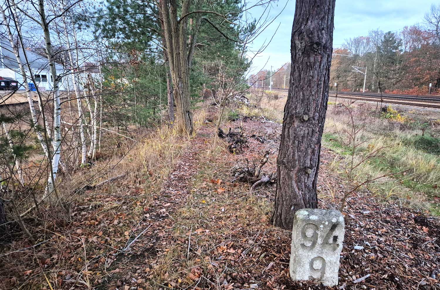 km 94,5 (Stein) und km 94,6 (Tafel) in Dresden-Klotzsche - Blick Richtung Dresden