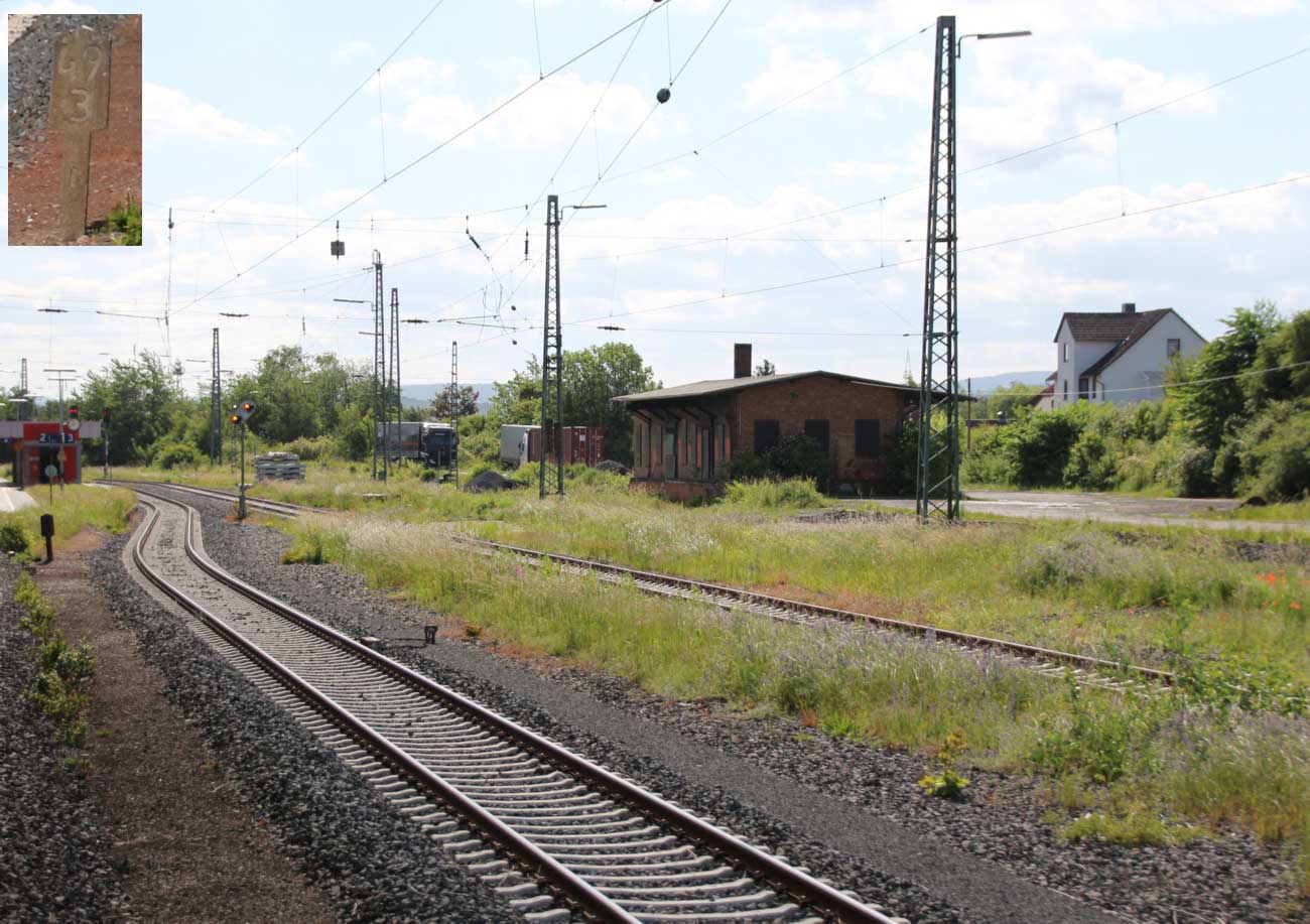 | Marburg Süd | 107,67 | km 0,0 der Strecke Marburg Süd Krbf 0,0 - Dreihausen 16,5 - Anschluss Neeb 16,7 (Marburger Kreisbahn) |