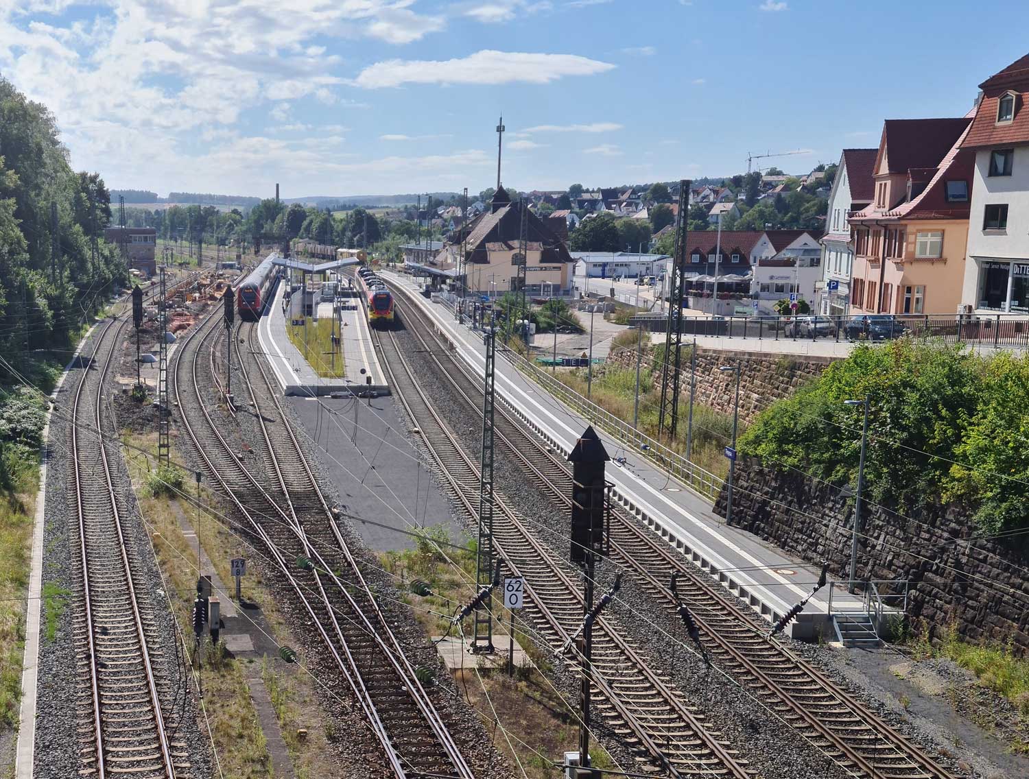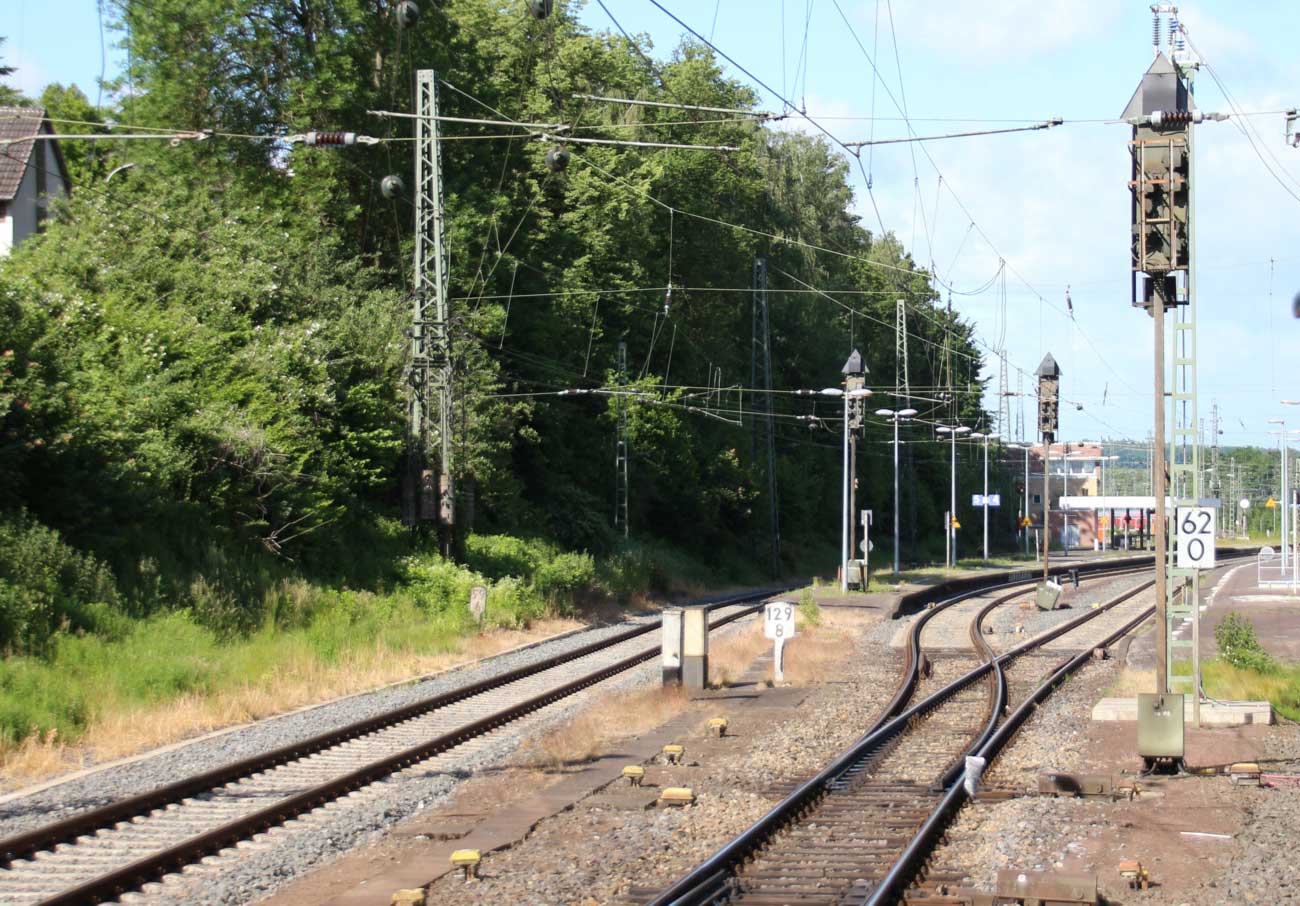 | km 166,23 der Strecke Hannover Hbf 0,0 - Barnten 22,87 - (Abzw. nach Abzw. Rössing 26,68) - Northeim (Han) 88,56 - Göttingen 108,16 - Dransfeld 123,84 - Hann. Münden 142,03 - Kassel Hbf 166,23 | ||