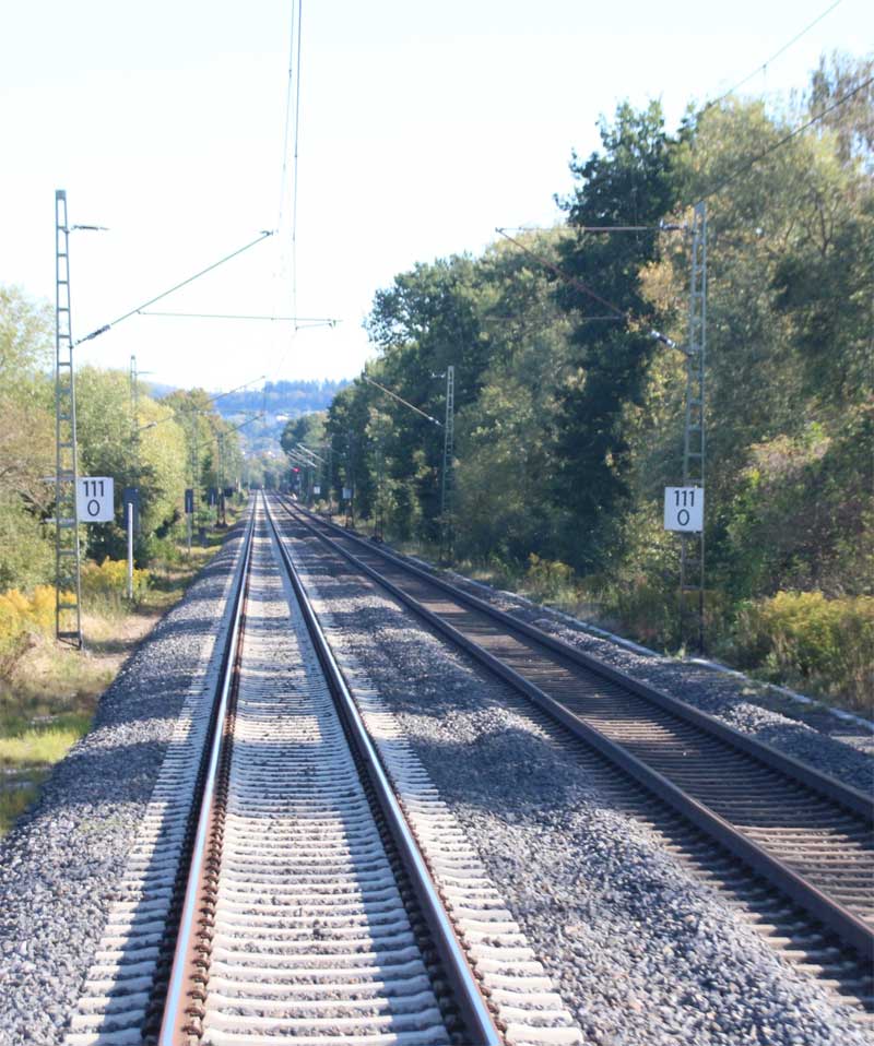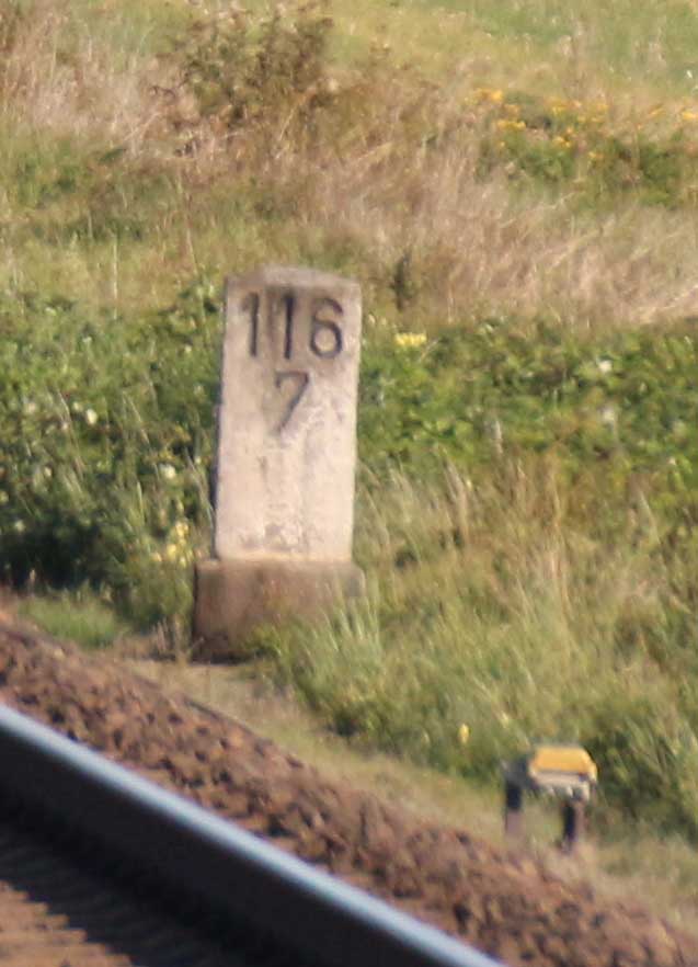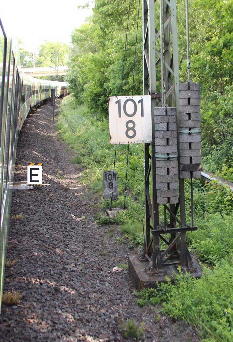 km 110,4 (Tafel) und km 110,5 (Stein) zwischen Marburg Süd und Niederweimar