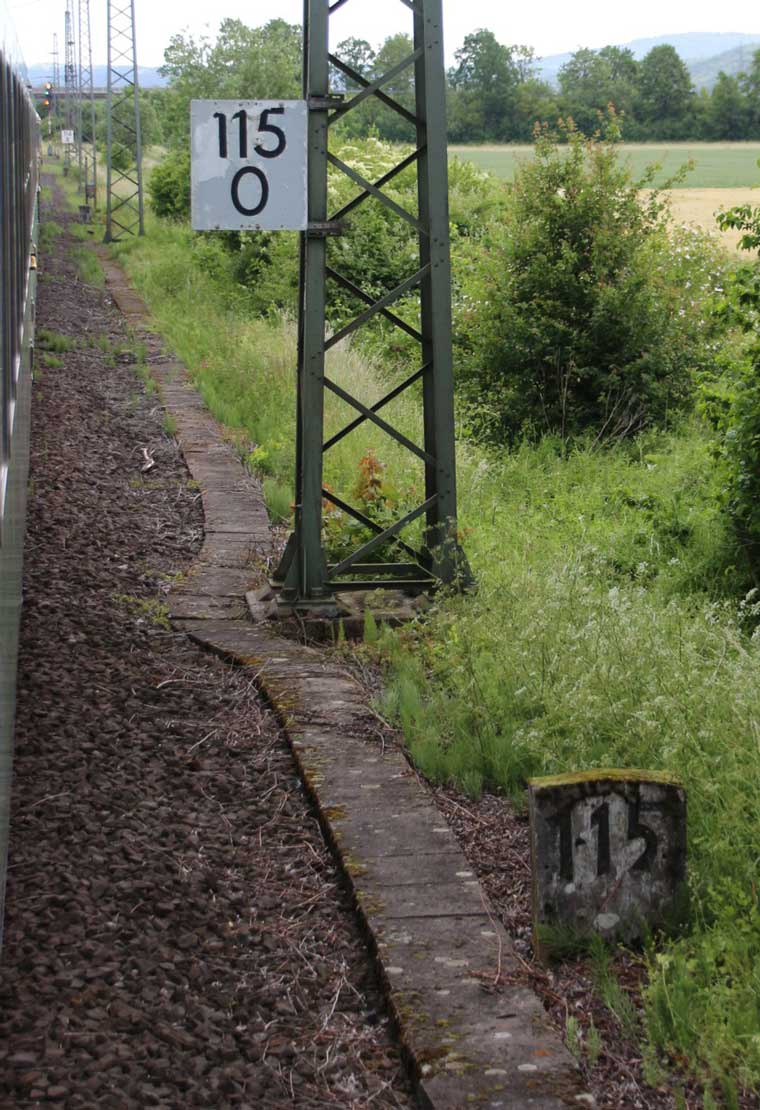 km 111,4 (TafelU und km 111,5 (Stein) zwischen Marburg Süd und Niederweimar