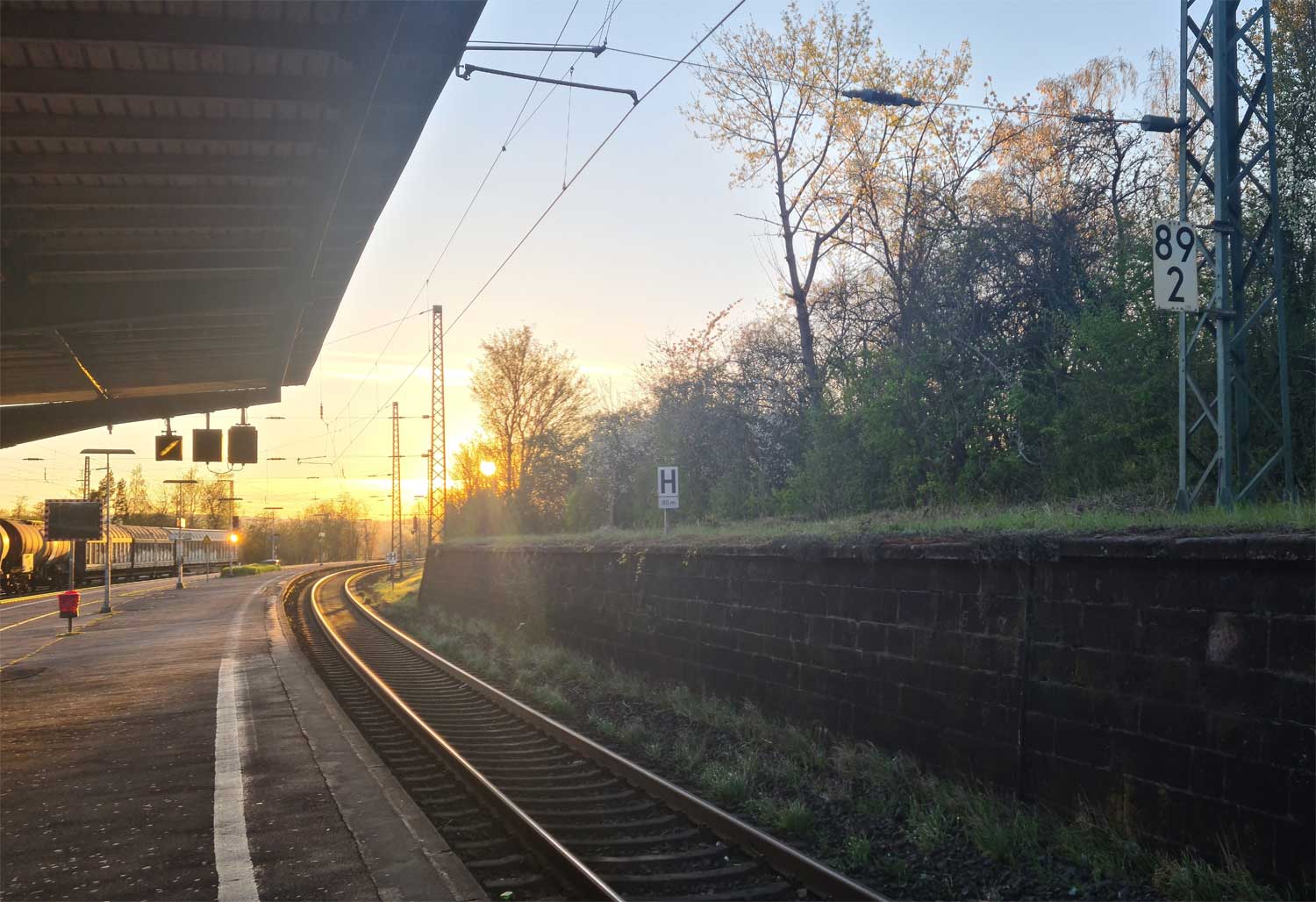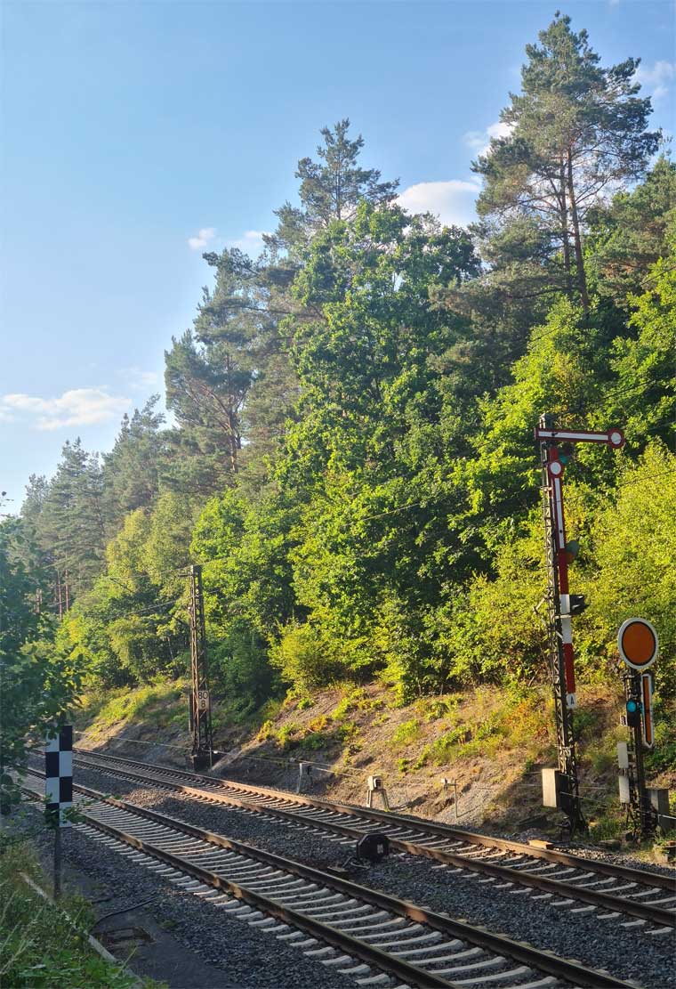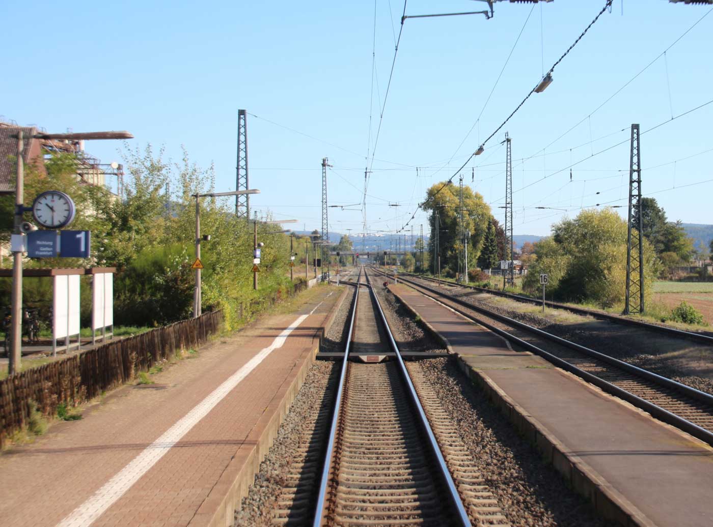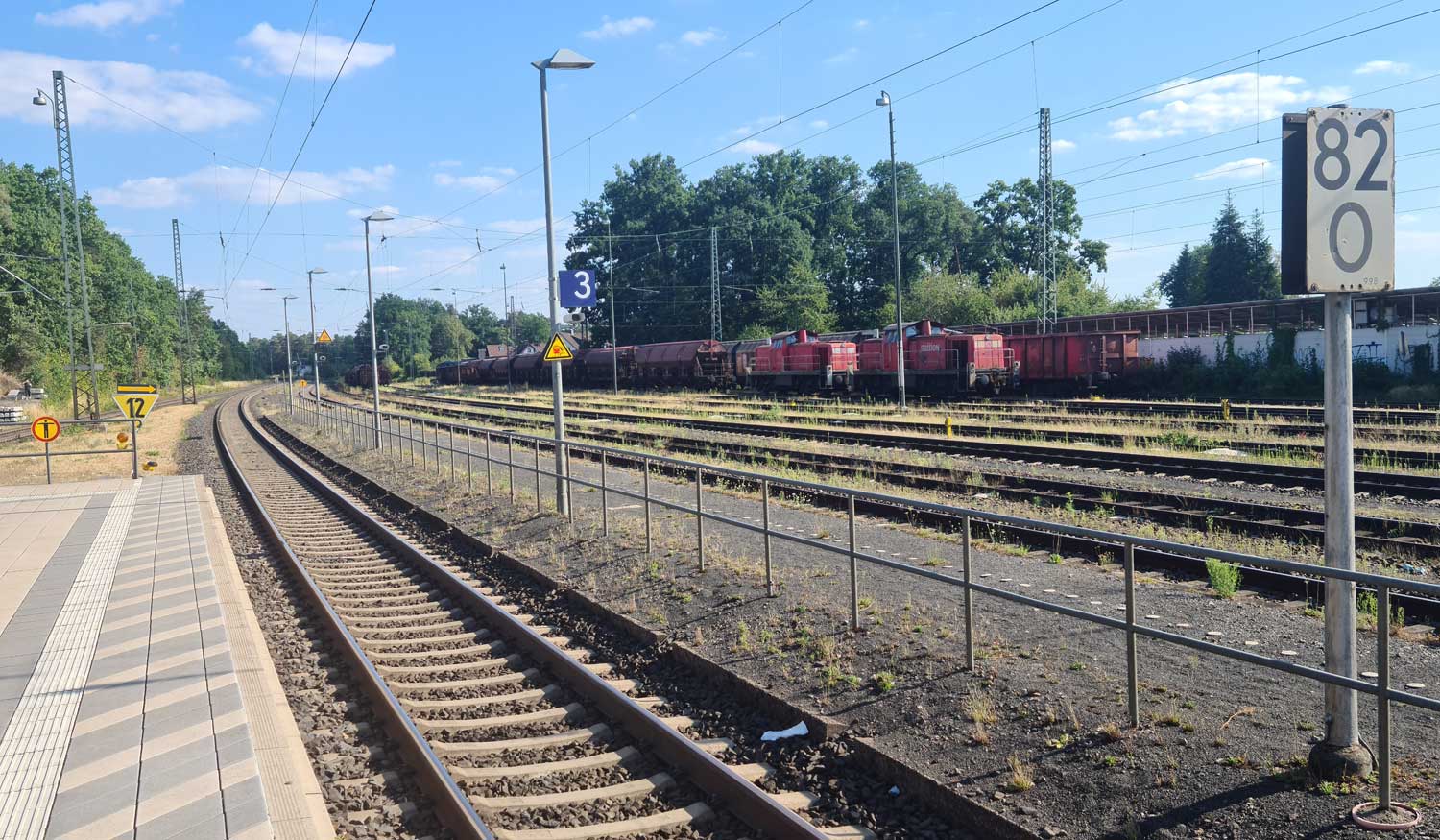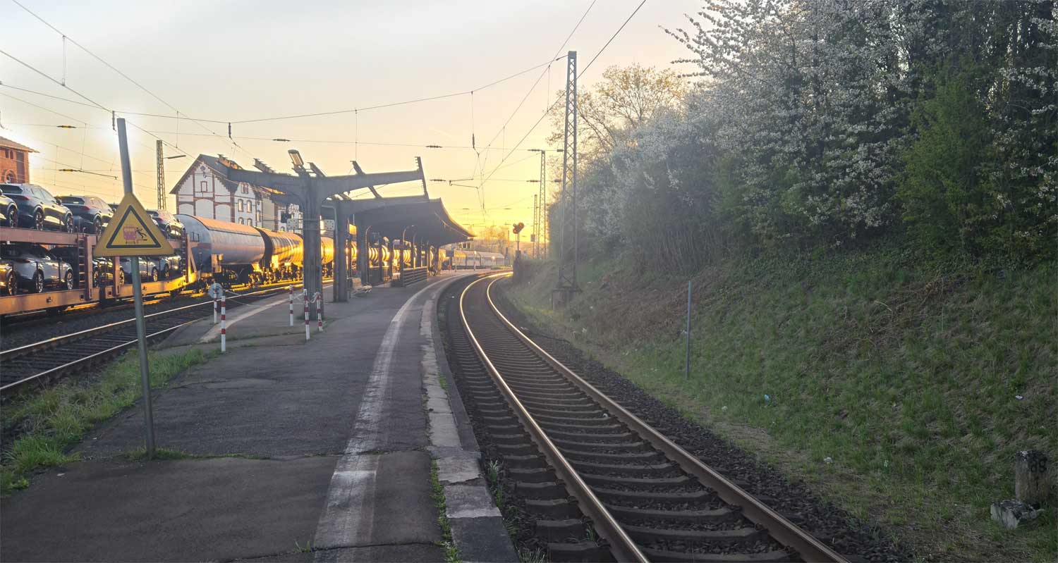 | km 166,23 der Strecke Hannover Hbf 0,0 - Barnten 22,87 - (Abzw. nach Abzw. Rössing 26,68) - Northeim (Han) 88,56 - Göttingen 108,16 - Dransfeld 123,84 - Hann. Münden 142,03 - Kassel Hbf 166,23 | ||