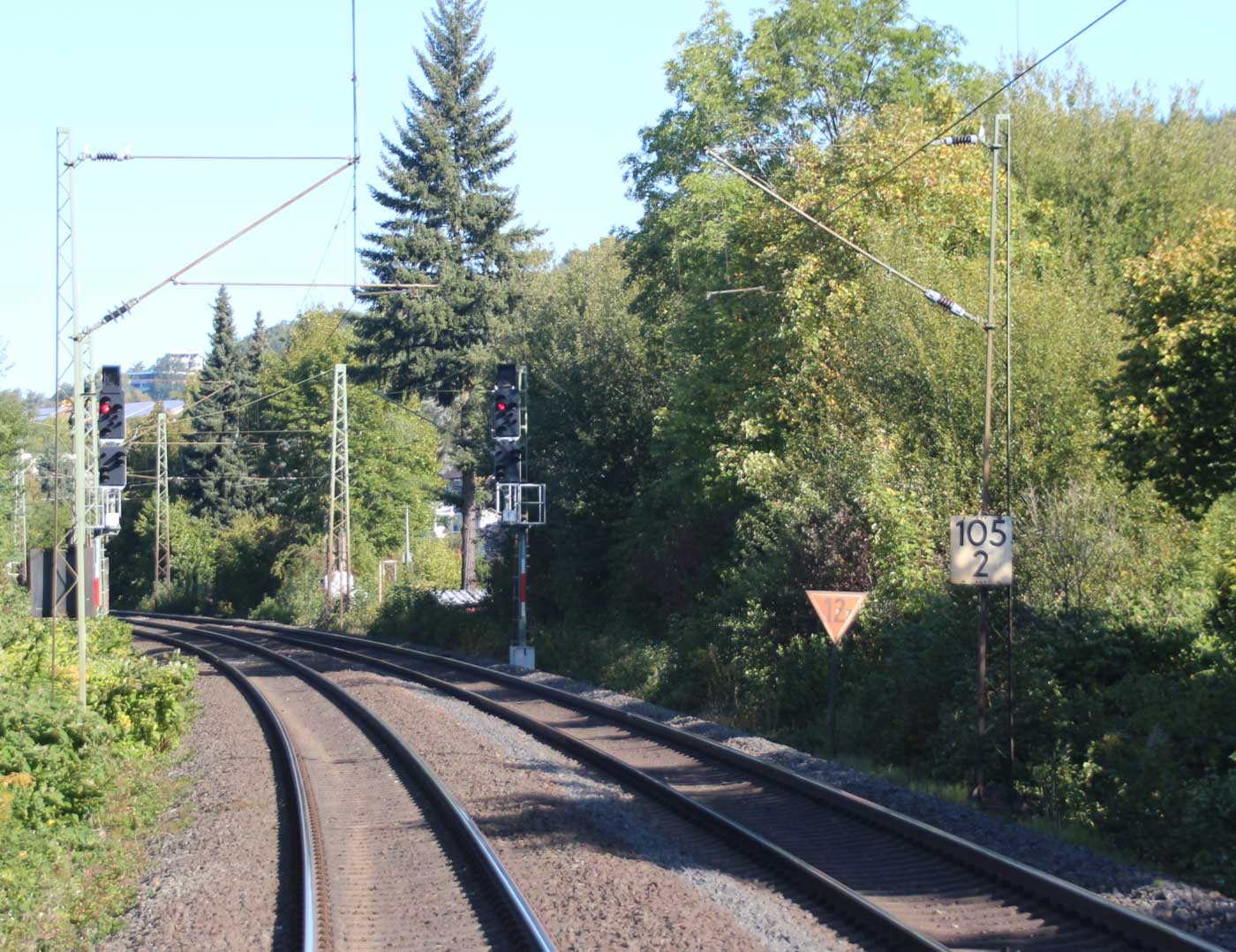 km 104,1 und km 104,2 in Marburg (Lahn) - Blick Richtung Frankfurt (Main)