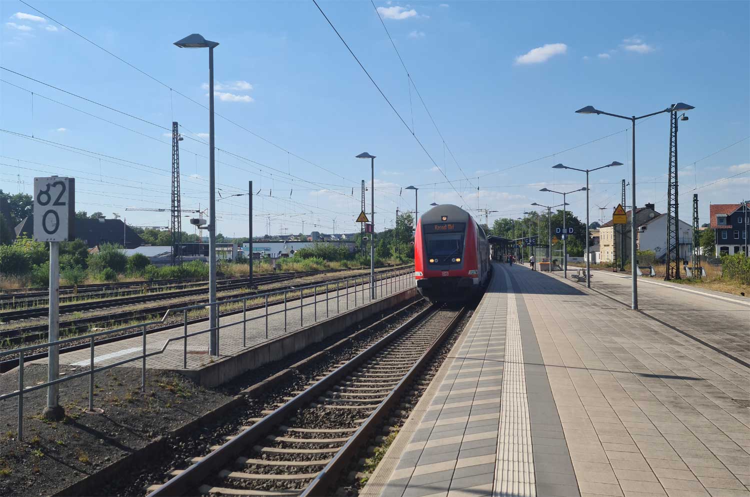 | Gießen | 133,97 | km 166,00 der Strecke Köln Deutz 0,0 - Troisdorf 20,06 - Au (Sieg) 64,76 - Betzdorf (Sieg) 82,97 - Haiger 118,83 - Dillenburg 125,00 - Wetzlar 153,40 - Gießen 166,00 |