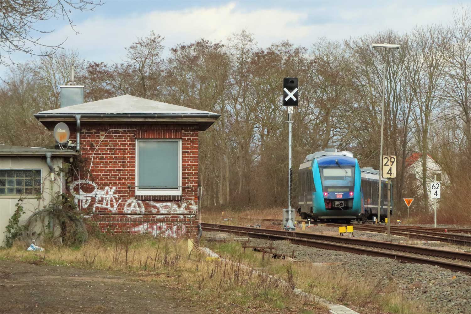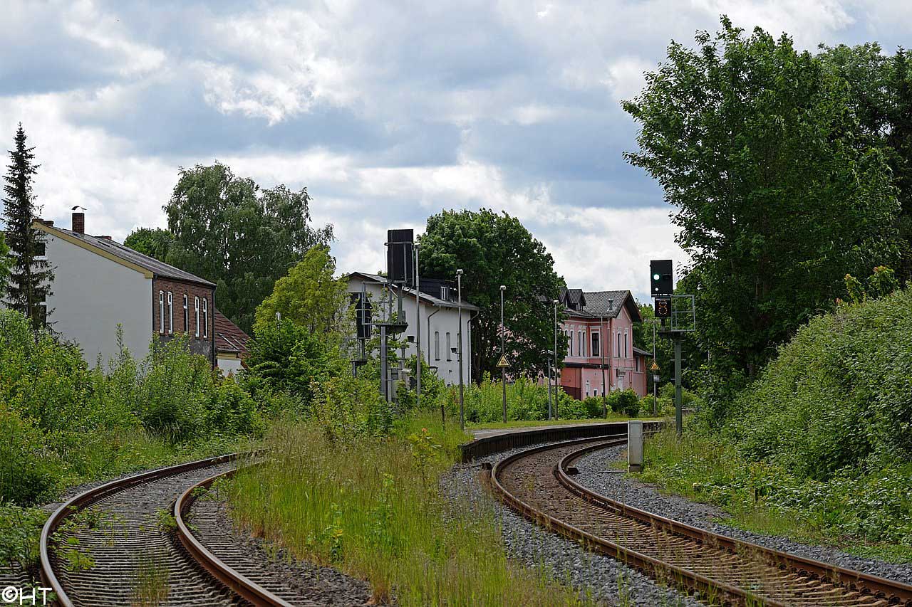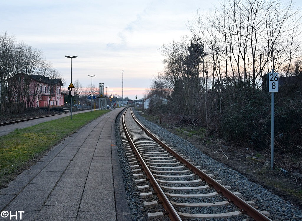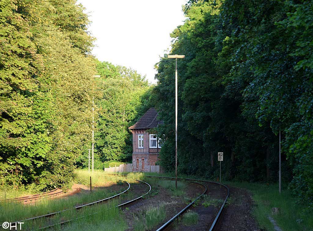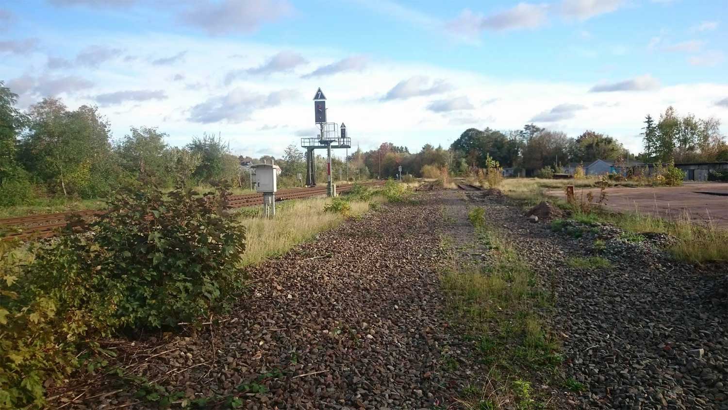 rechts die Weiche der einst nach Oldenburg führenden Strecke.