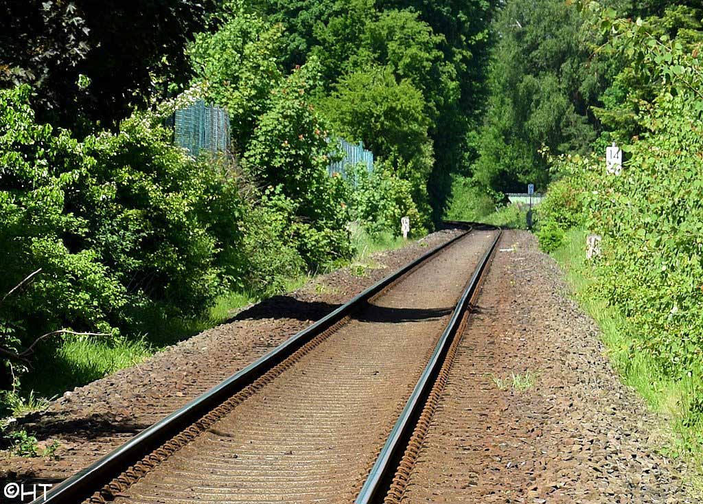 das Gleis in Blickrichtung führt zum Schöneberger Strand, ganz links das Gleis zum Bf Kiel Süd/Kleinbf.