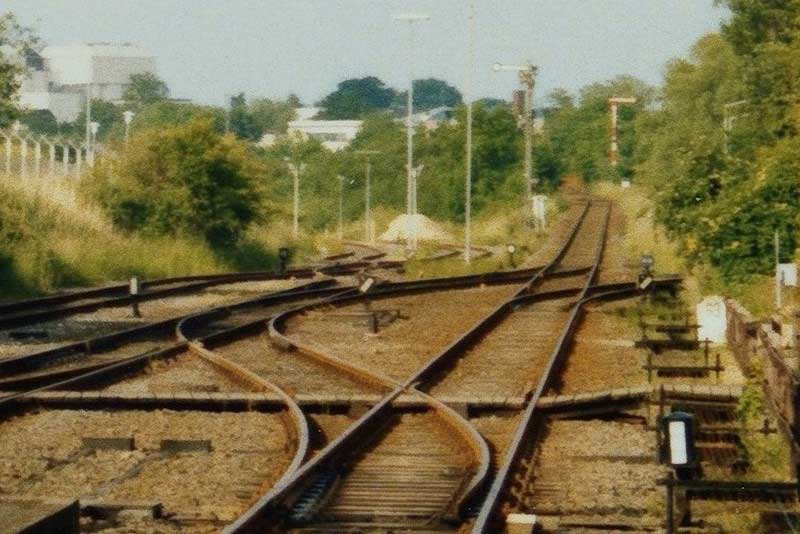 links die Abstellgruppe entlang der Trasse von 1866,