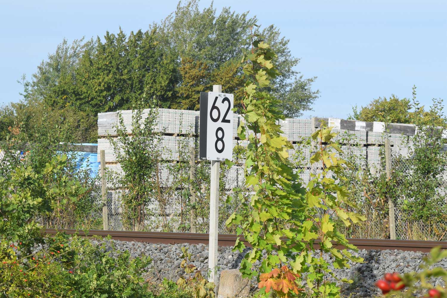 Im Hintergrund ist km 62,8 zu erkennen
