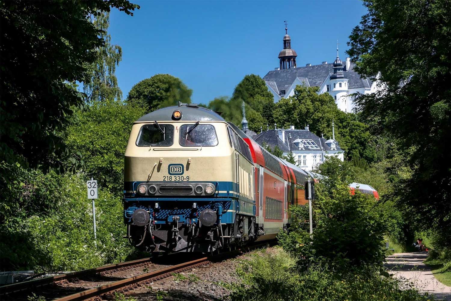 Der Zug befindet sich auf der Strecke Kiel Hbf - Ascheberg,