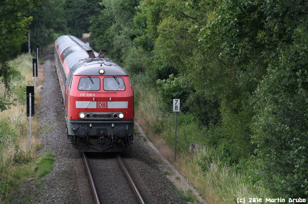 km 10,5 bei Raisdorf - 218 453 schiebt die RB 21496