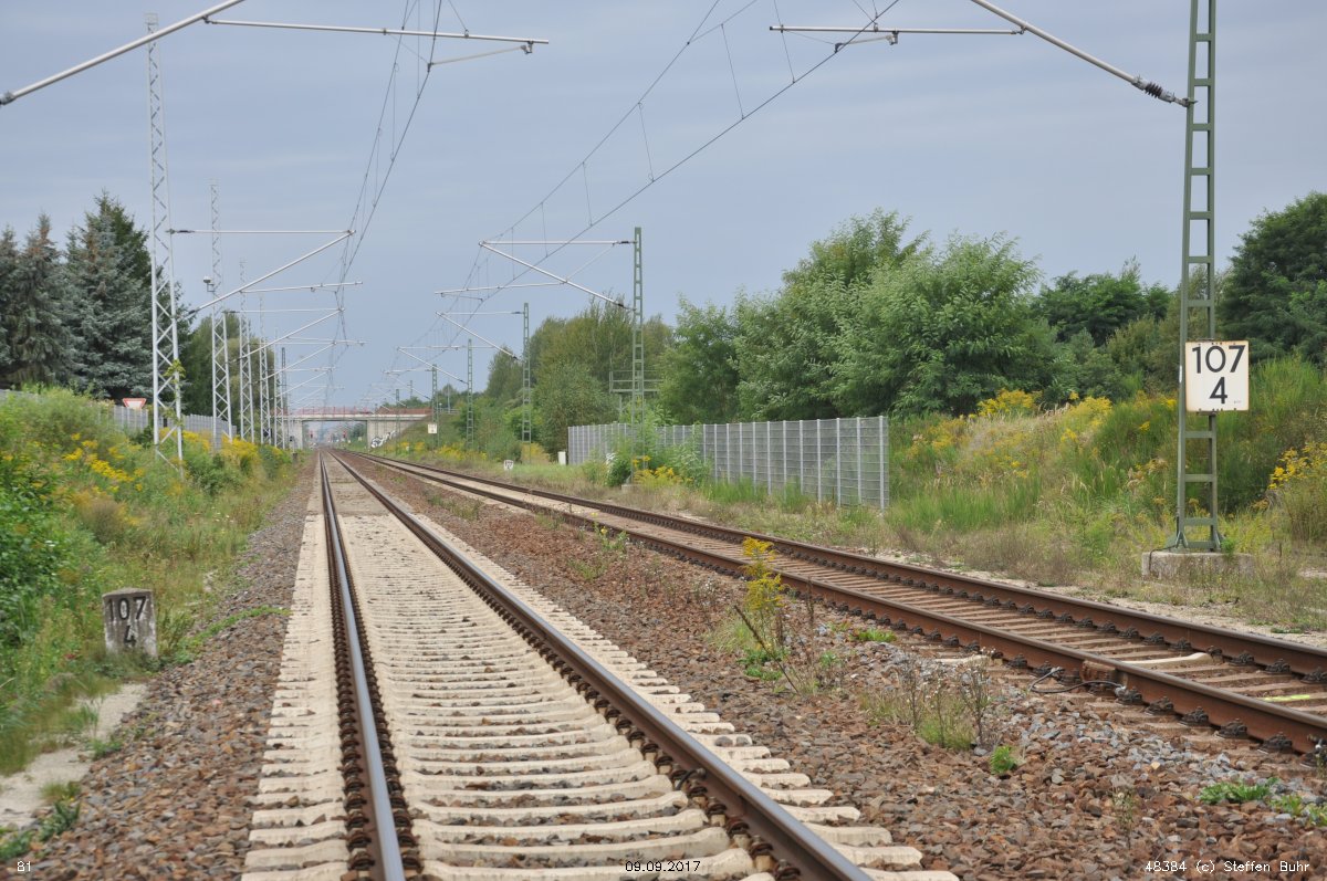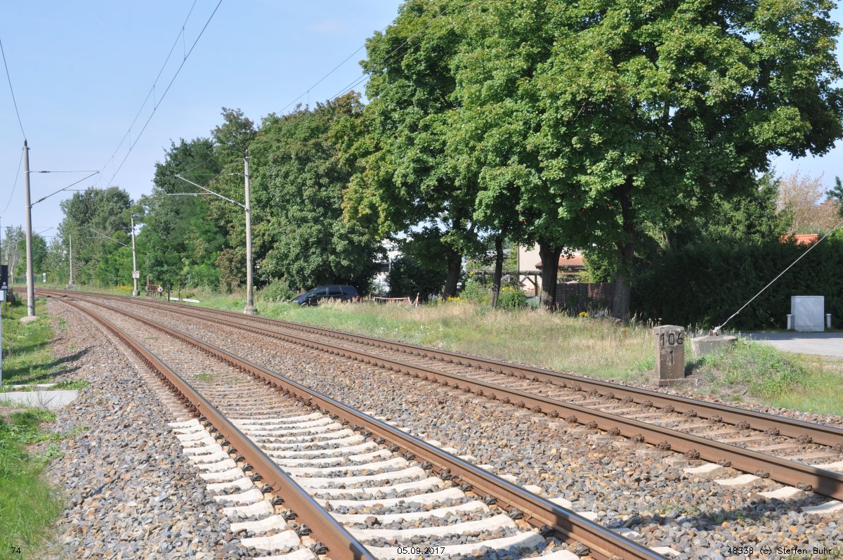 bei km 124,4 (oben) in Elsterwerda-Biehla