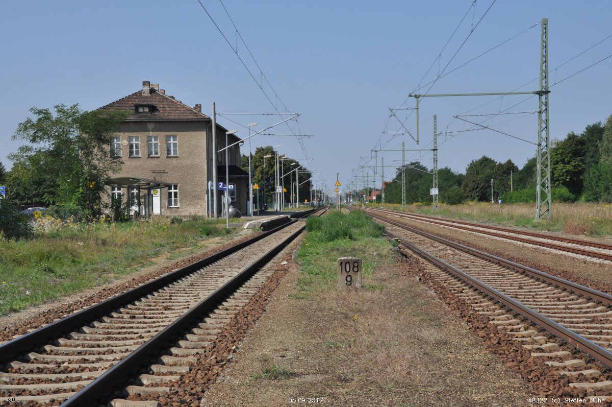 | Lutherstadt Wittenberg | 201,93 | km 94,77 der Strecke Berlin Anhalter Bf -0,07 - Jüterbog 62,82 - Bitterfeld 131,64 - Halle (Saale) Hbf 161,65 |