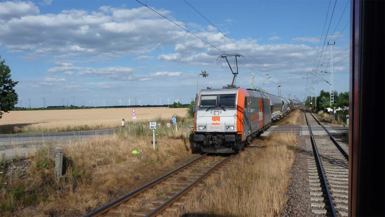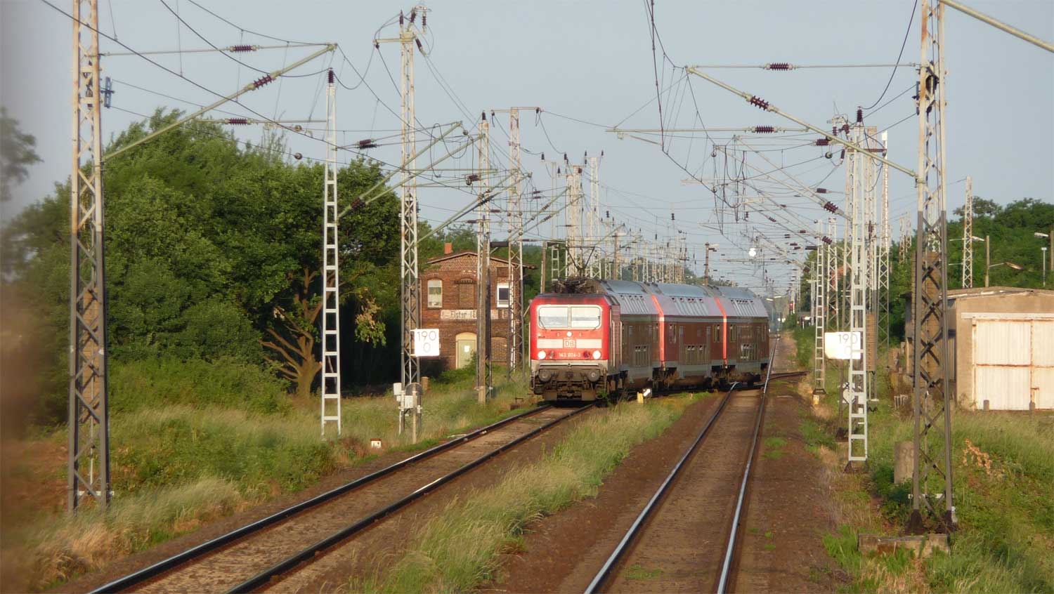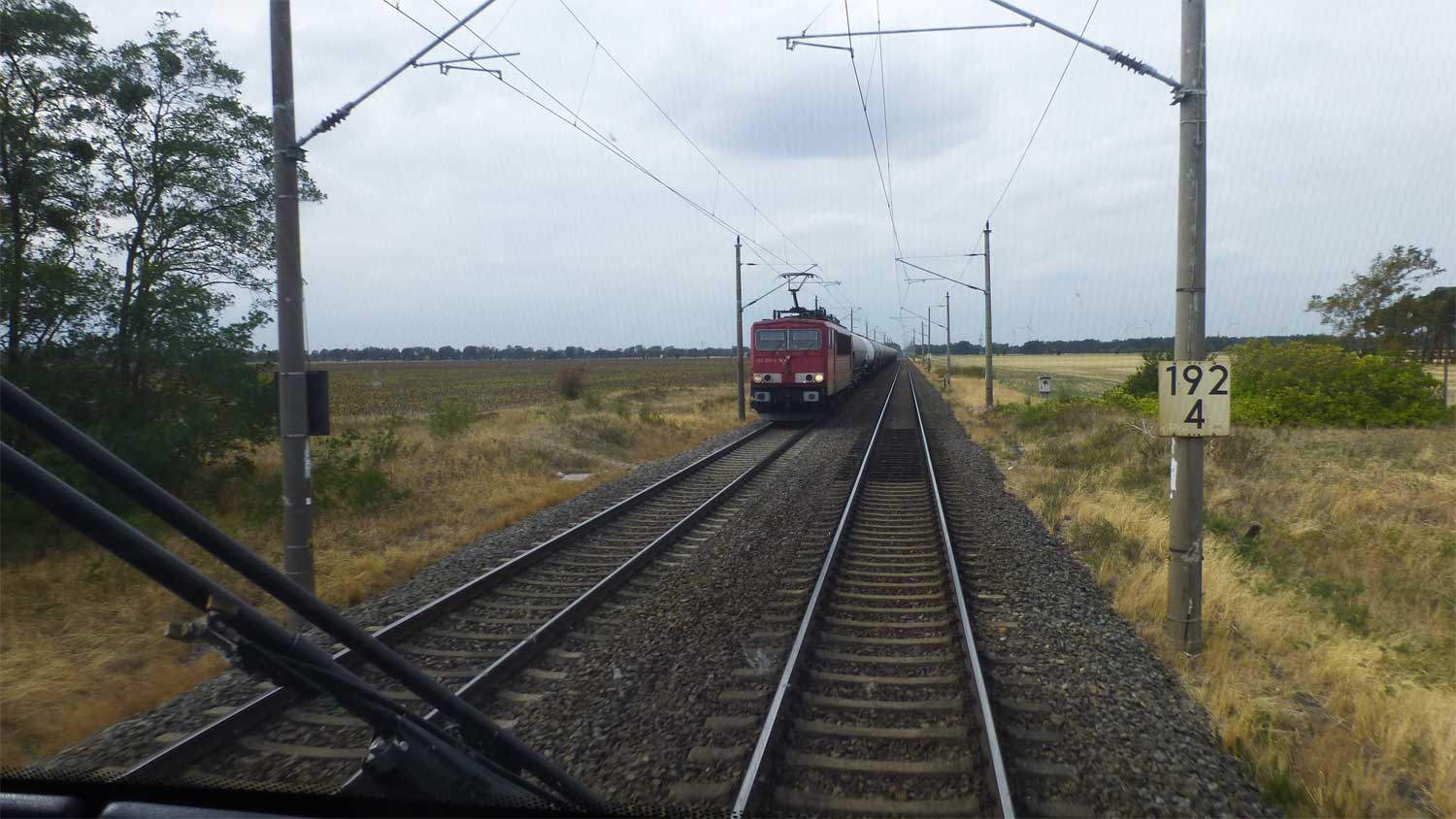Wir sehen die Beschleunigungsphase auf 160 km/h bei der Durchfahrt in Annaburg in Richtung Falkenberg(E).