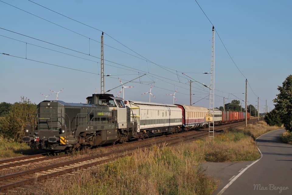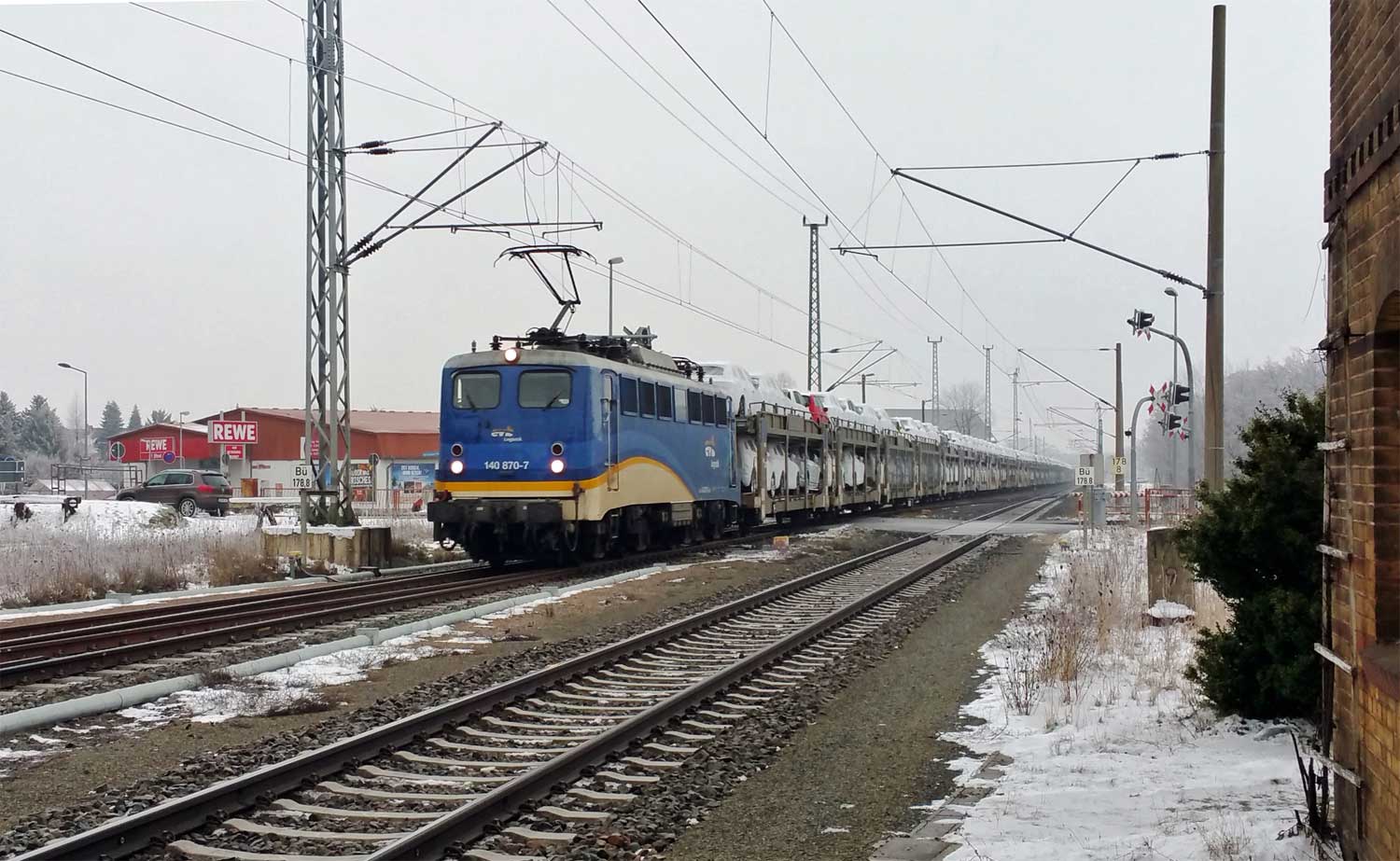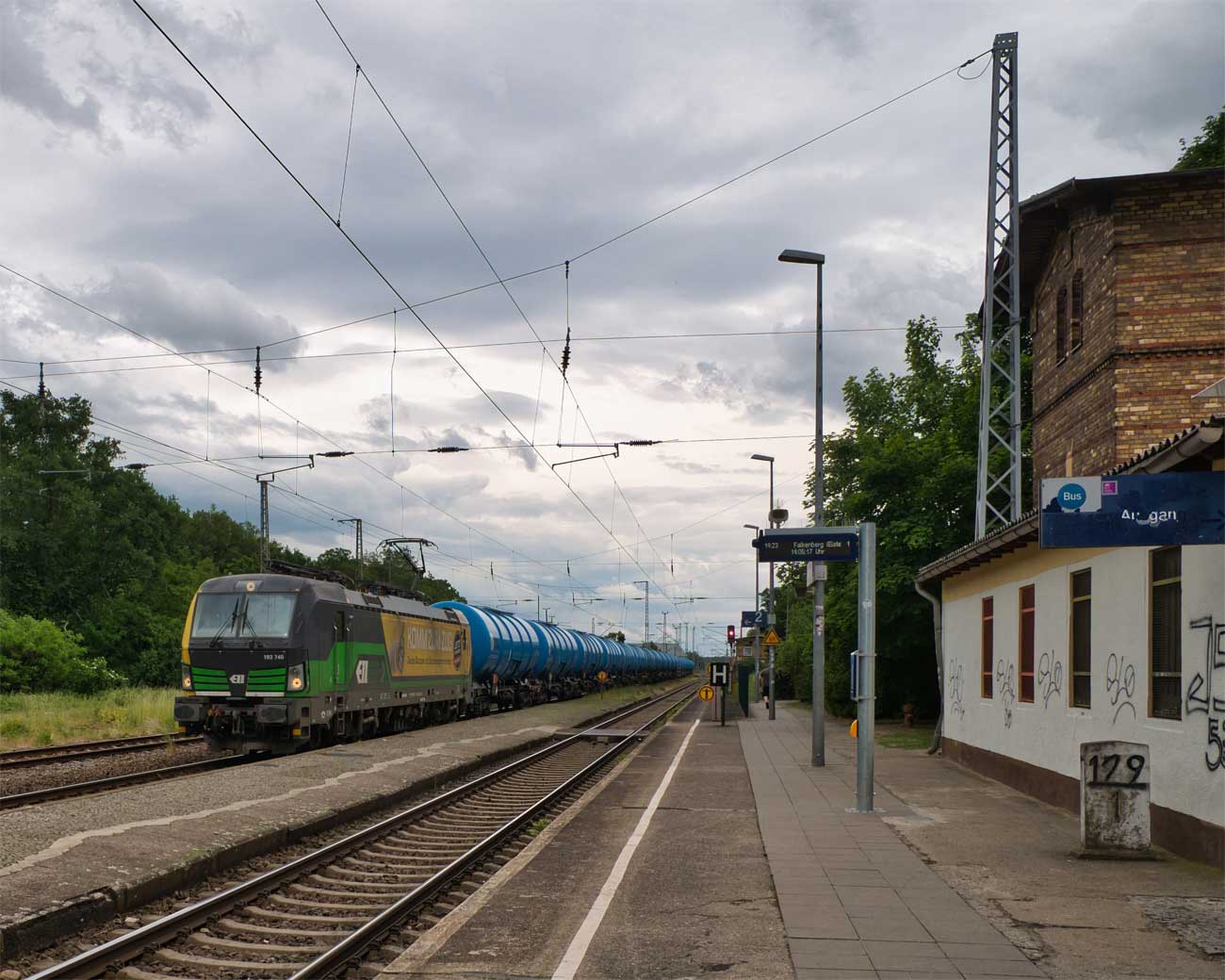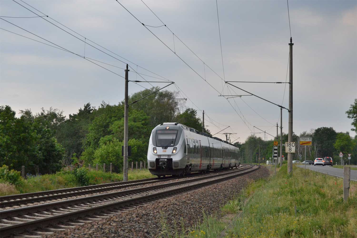 Wir sehen die Beschleunigungsphase auf 160 km/h bei der Durchfahrt in Annaburg in Richtung Falkenberg(E).