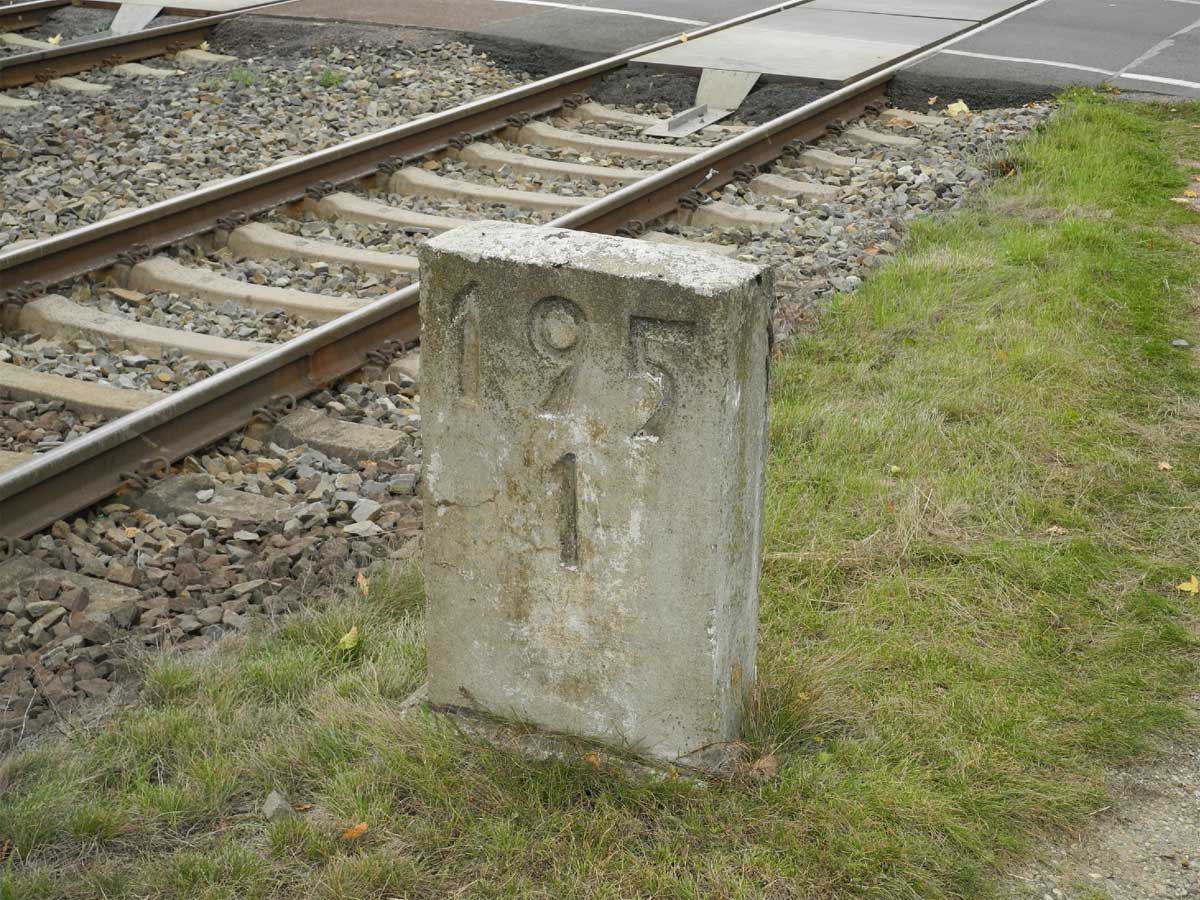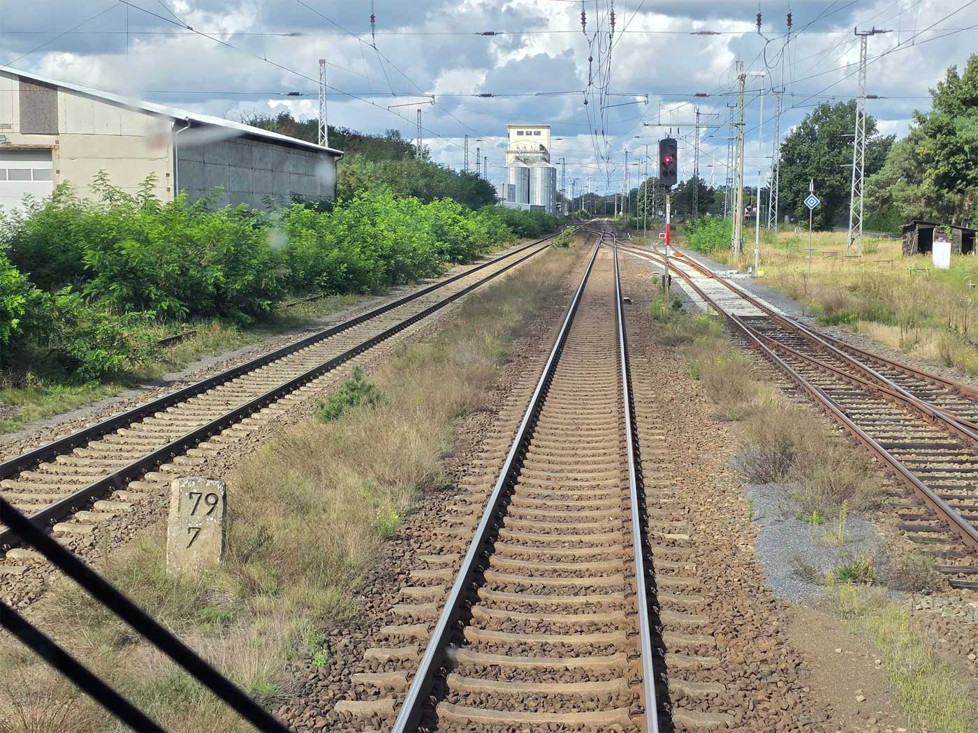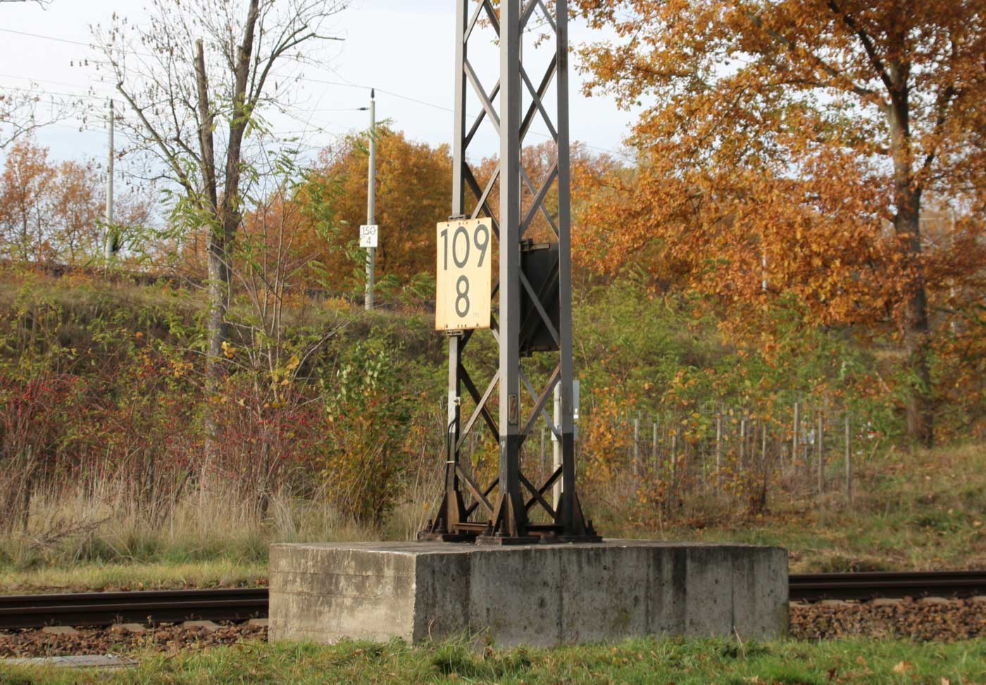 km 178,8 (Tafel) und km 178,9 (Stein) in Jessen (Elster) - Blick Richtung Węgliniec (Kohlfurt)