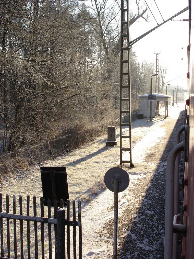 | km 0,31 der Strecke Falkenberg (Elster) 0,31 - Uckro 49,39 - Luckau 57,39 - Lübben Hp 73,2 - Beeskow 113,662 | ||