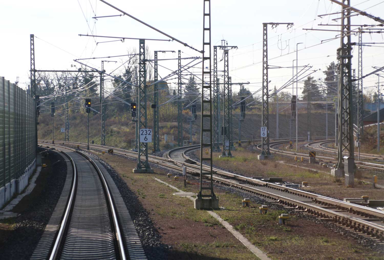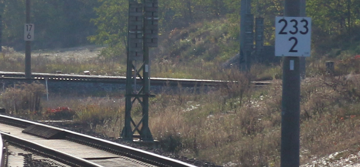 km 232,6 (hinter dem Oberleitungsmast) gehört zum Streckenast
