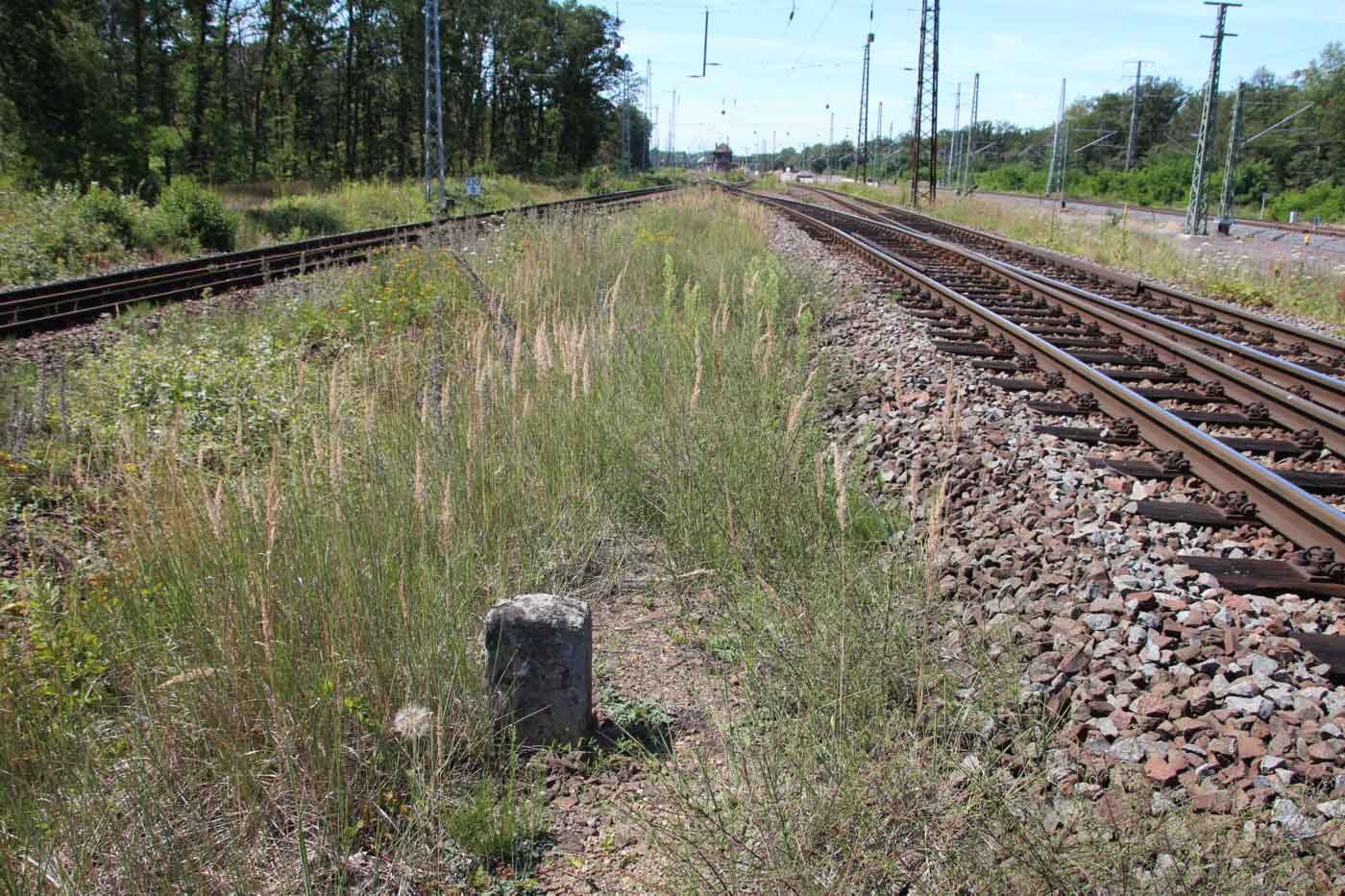 km 233,6 (rechts hinter dem Oberleitungsmast) in Roßlau (Elbe) - Detail
