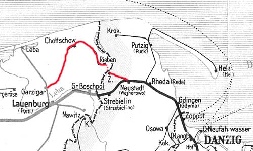 Neustadt (Westpr) 0,0 -Überbrück 9,94 - Rieben 12,84 - Gotendorf 37,61 - Garzigar 63,52 (Lauenburger Bahnen)