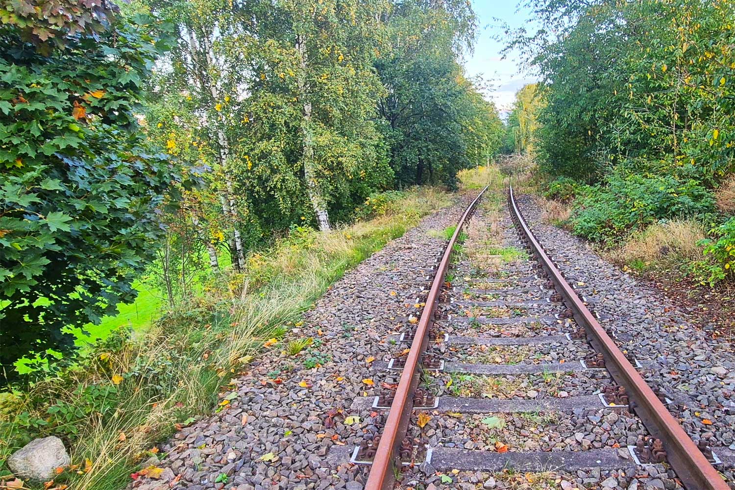 Links das Gleis des Anschlusses Papierfabrik Weißenborn