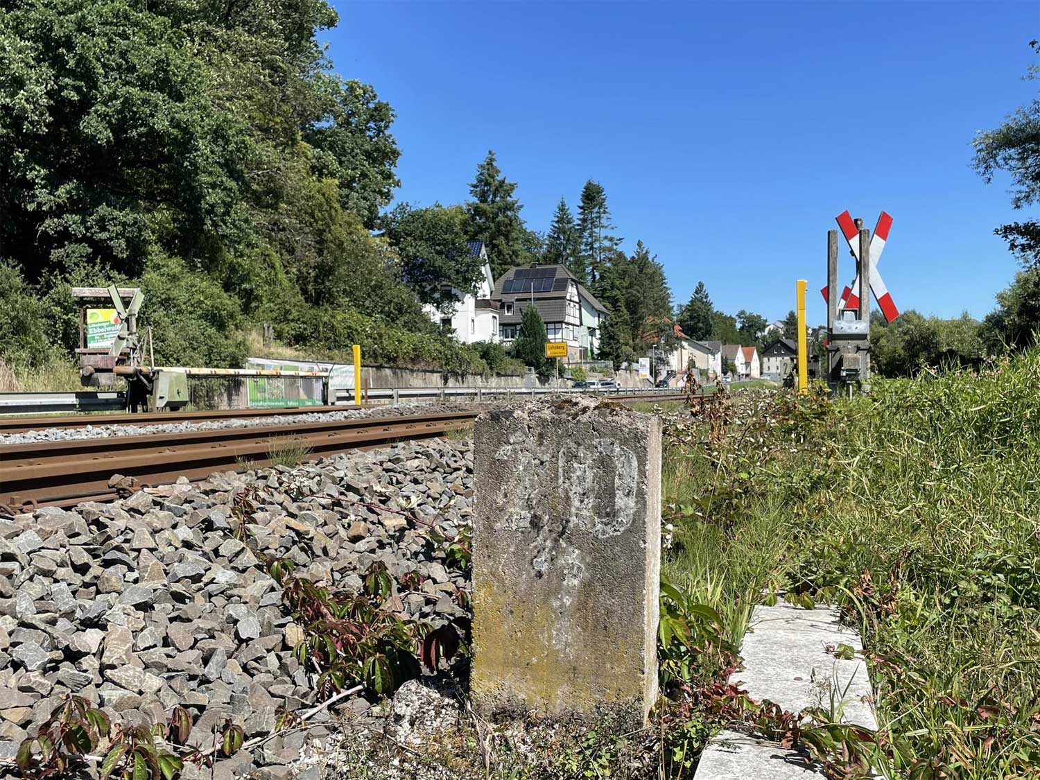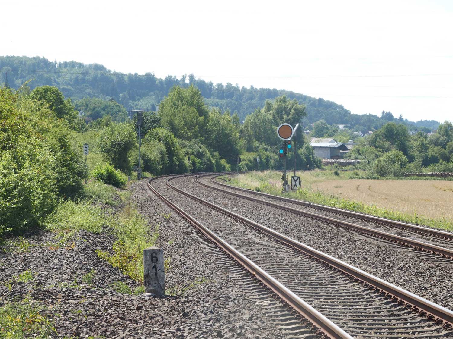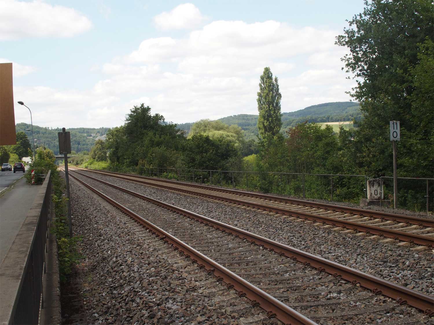 km 22,4 (Tafel und Stein) in Weilburg - Stellwerk Wo - Blick Richtung Wetzlar