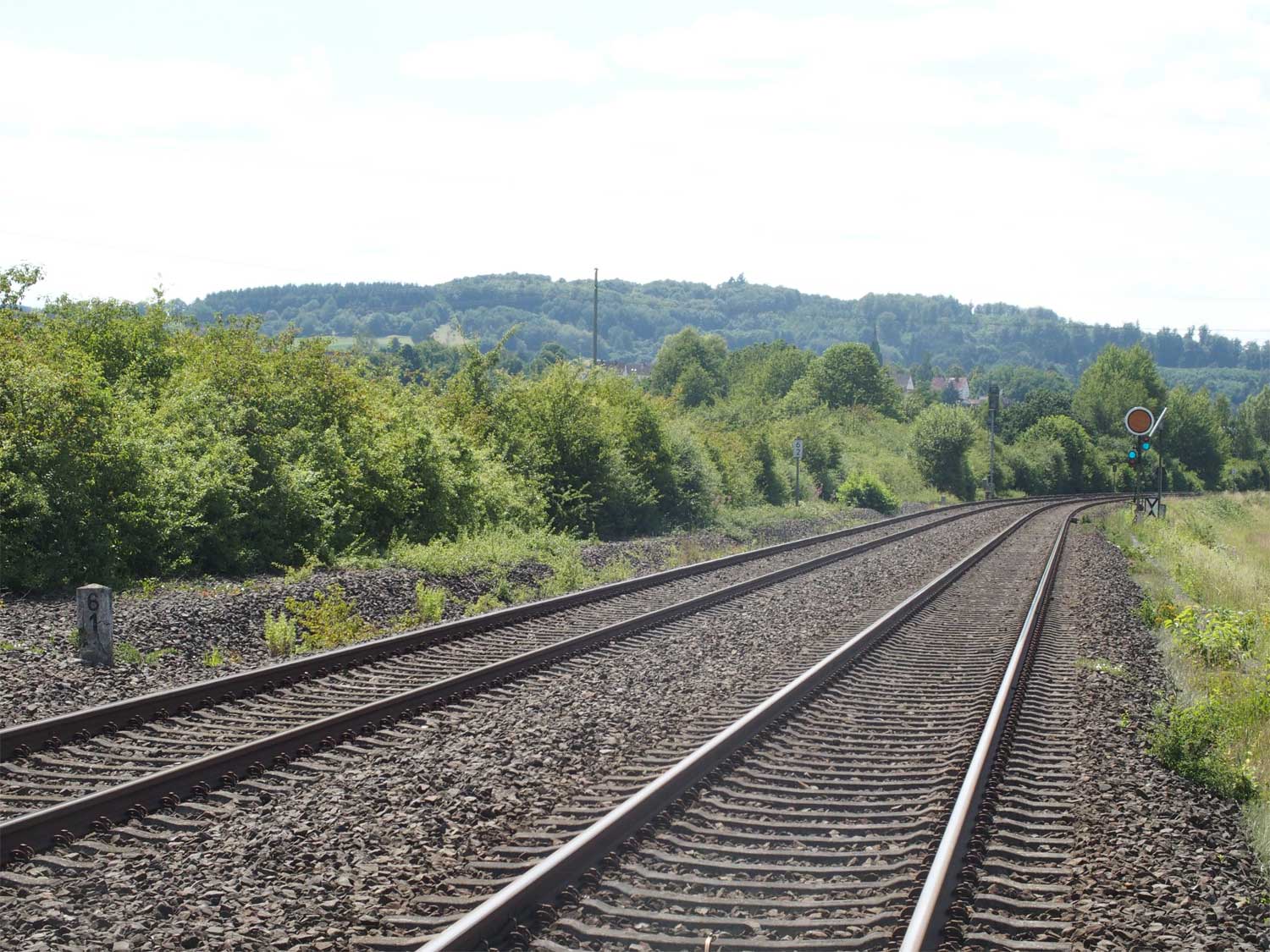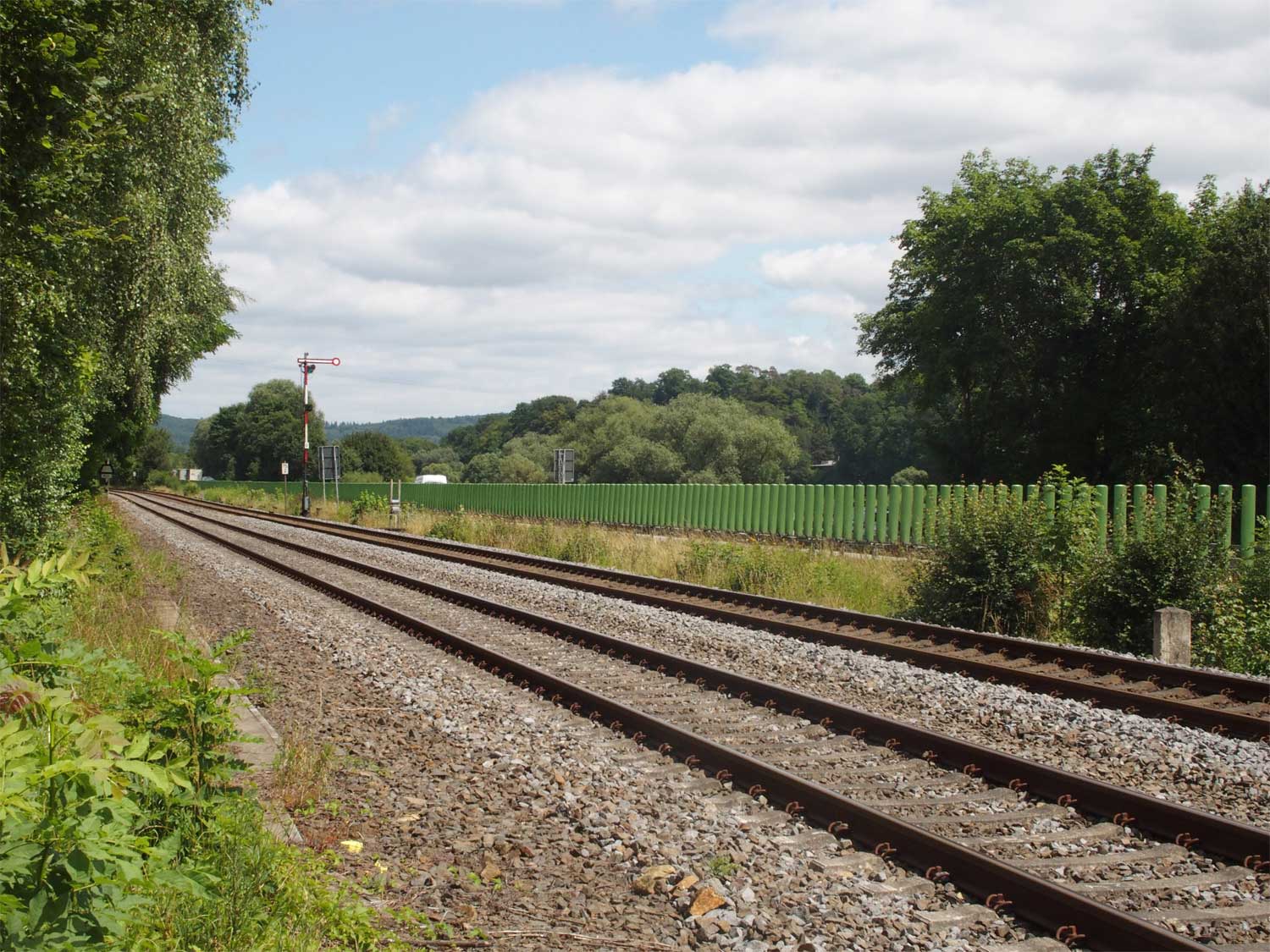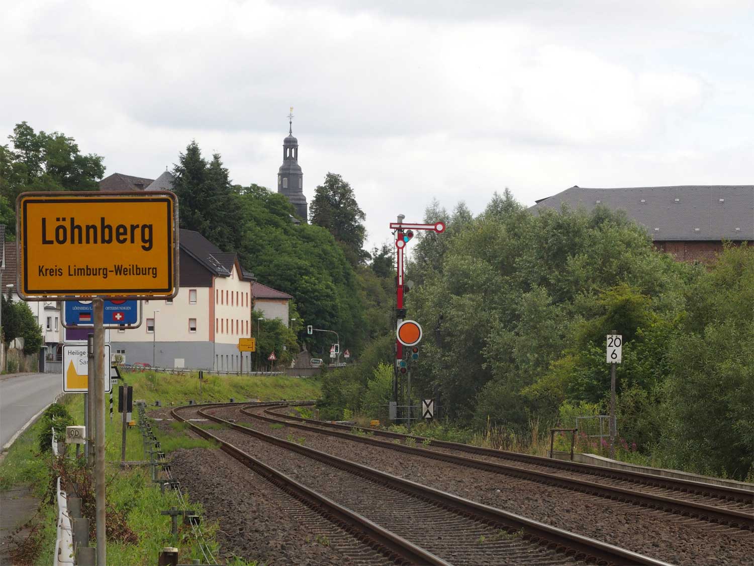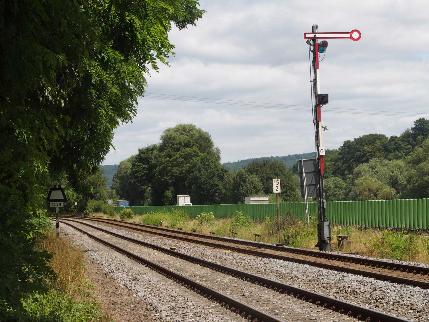km 22,4 (Tafel und Stein) in Weilburg - Stellwerk Wo - Blick Richtung Wetzlar