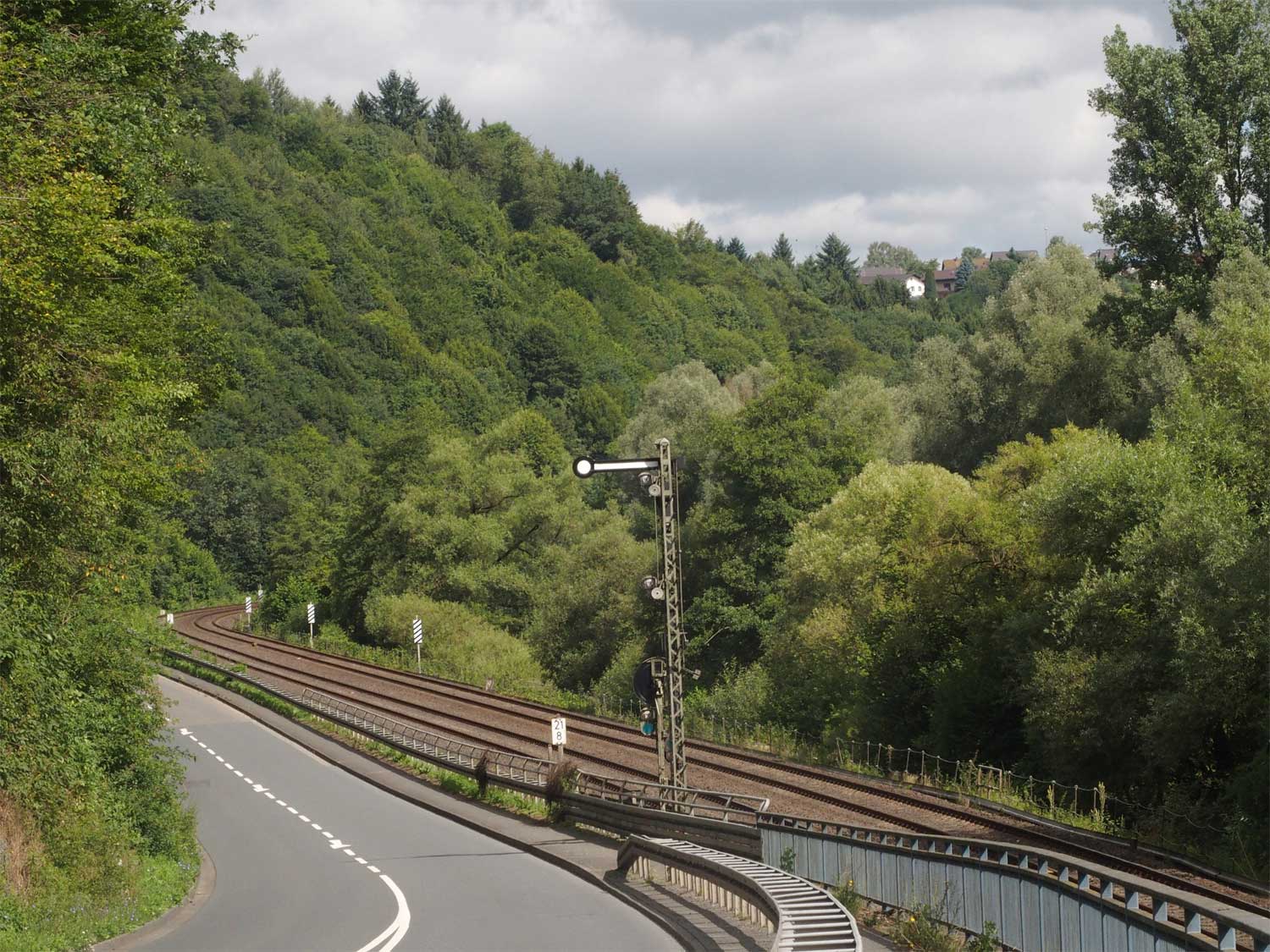 bei km 23,3 am Nordportal des Weilburger Tunnels - Blick Richtung Koblenz