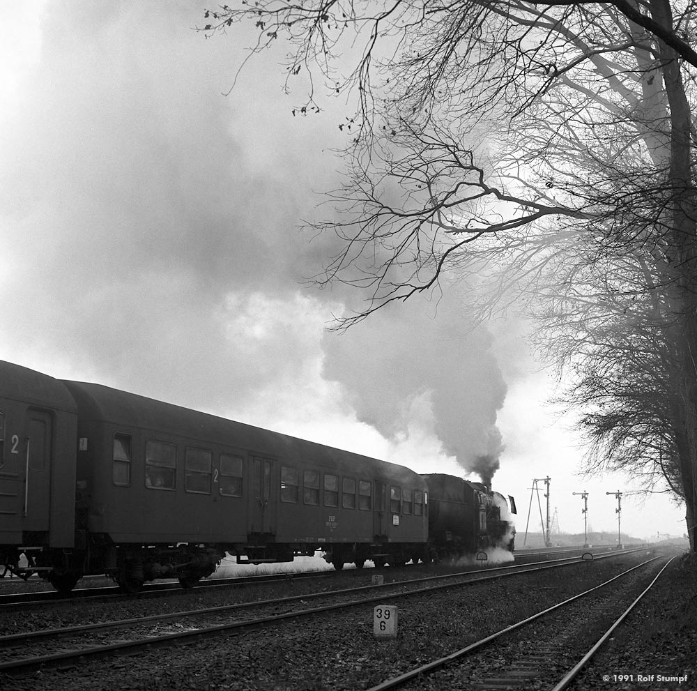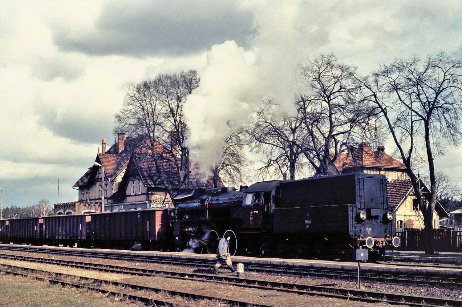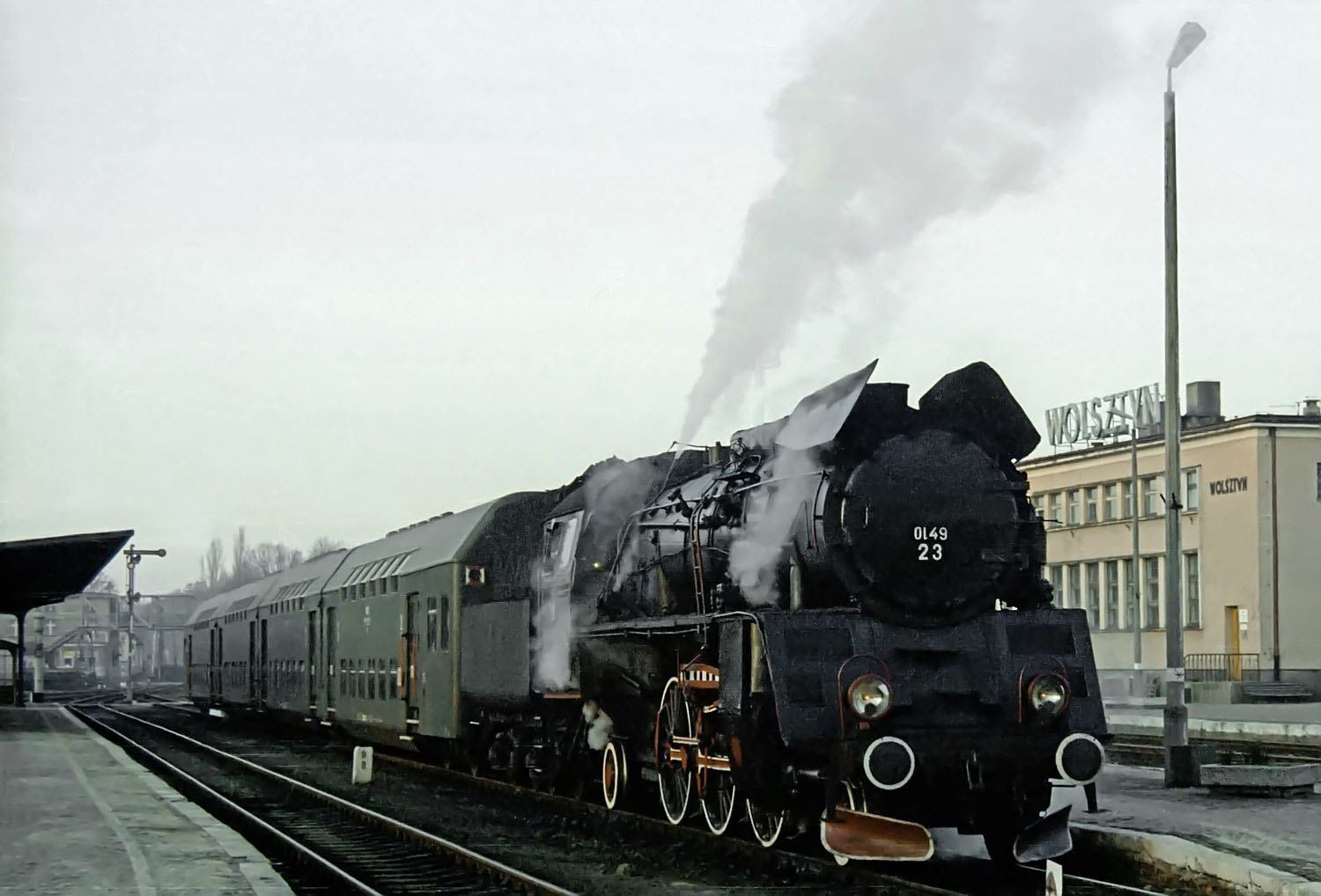 Ty2-249 bei der Ausfahrt Wolsztyn (Wollstein) in Richtung Nowa Sól (Neusalz an der Oder) am 26.02.1991