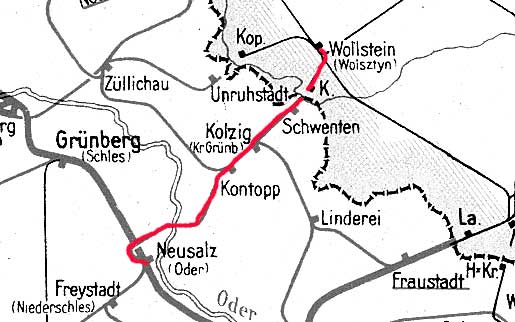 Wolsztyn (Wollstein) 0,0 - Reichsgrenze Polnischer Korridor/Deutschland 11,276 - Neusalz (Oder) 52,1