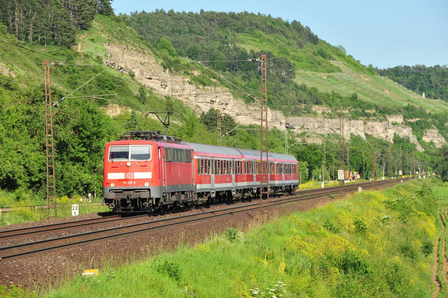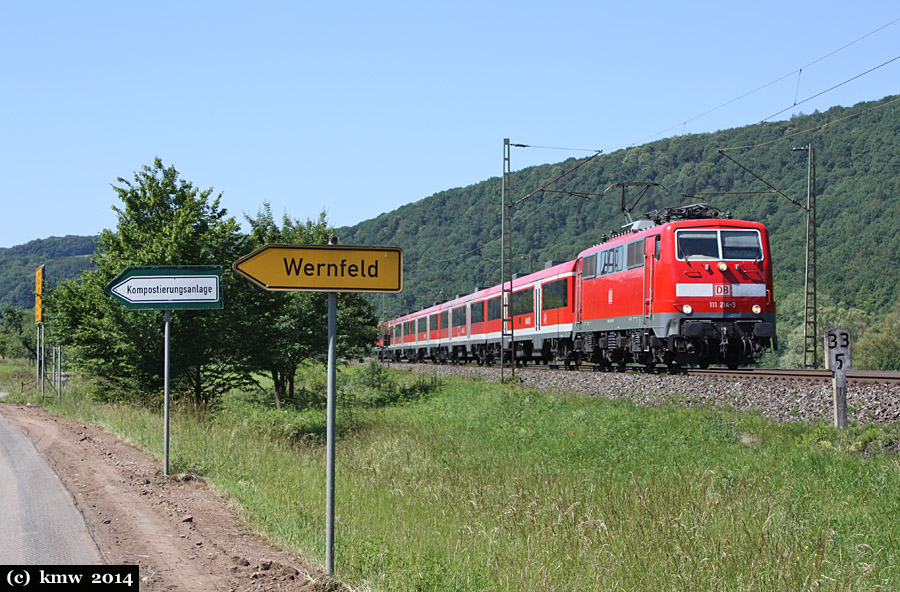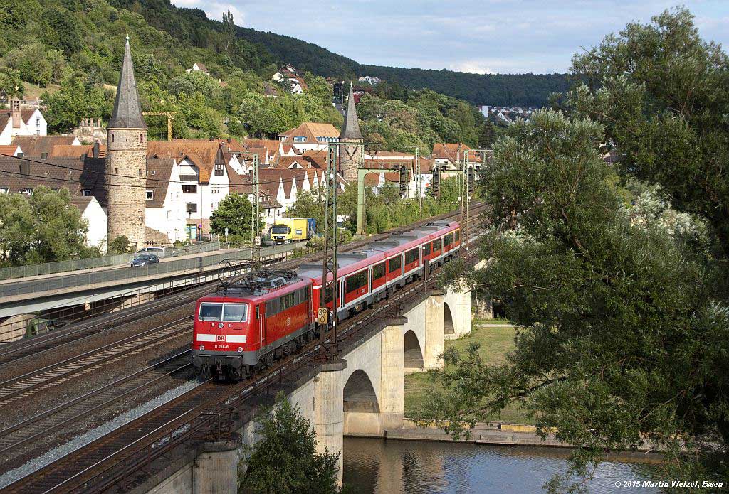km 39,0 in Gemünden (Main) - 111 056 schiebt RB 58379 (Aschaffenburg-Gemünden)